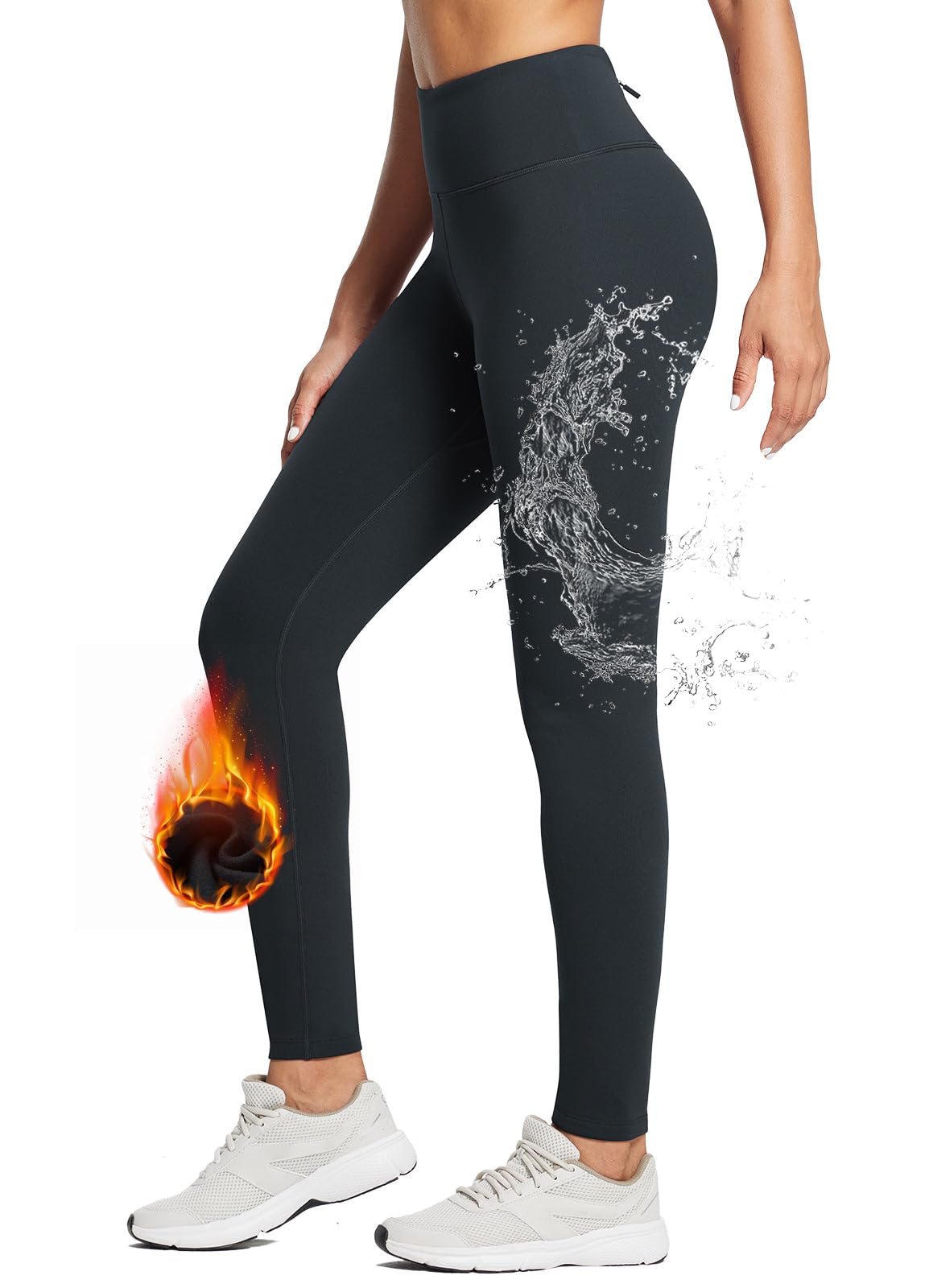 Tummy Control:BALEAF fleece water resistant running tights high waisted, offering gentle compression, will streamline your silhouette and hold in your midsection.