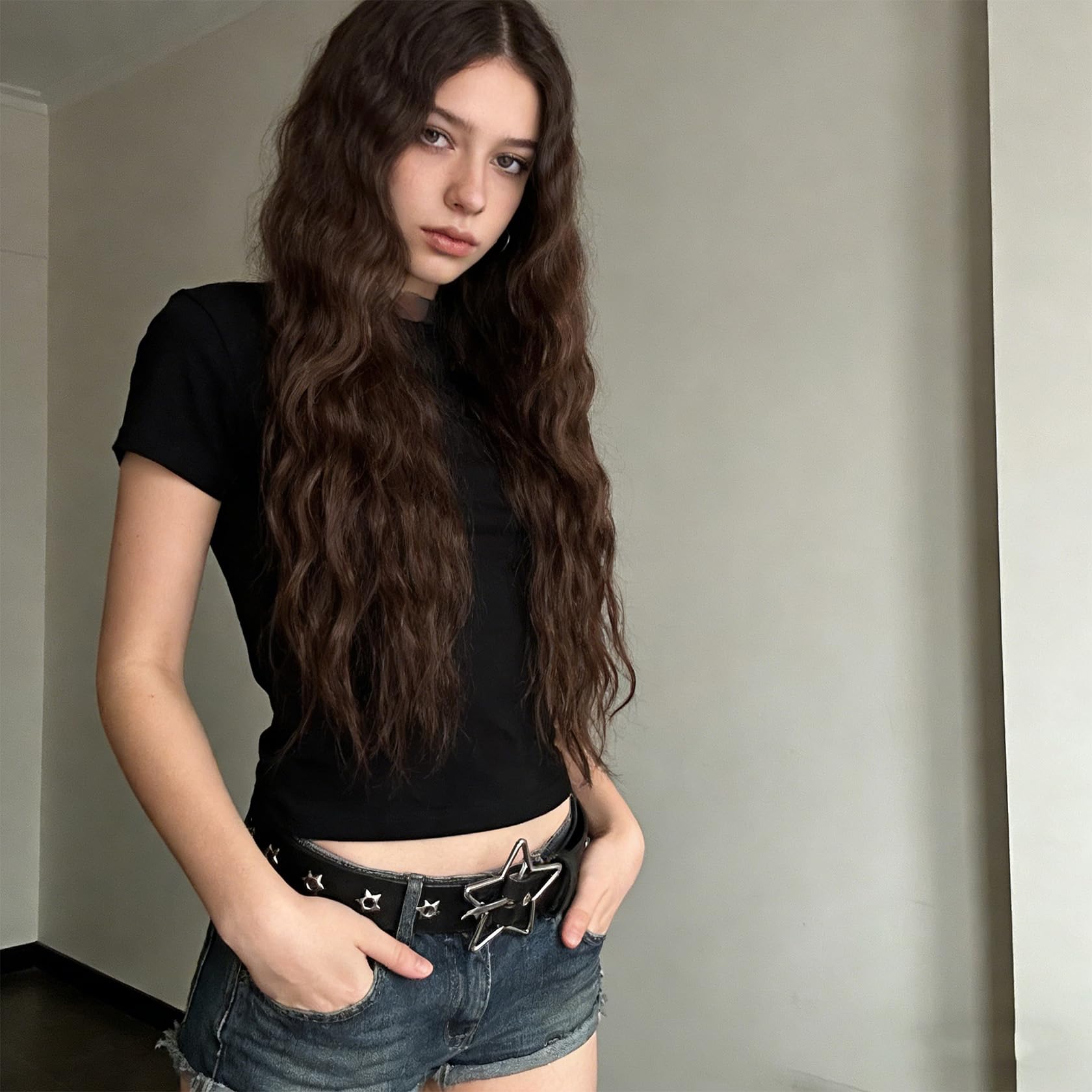 PU Leather Punk Belt with eyelets grommet clasp buckle, Y2K style goth belt for women men.