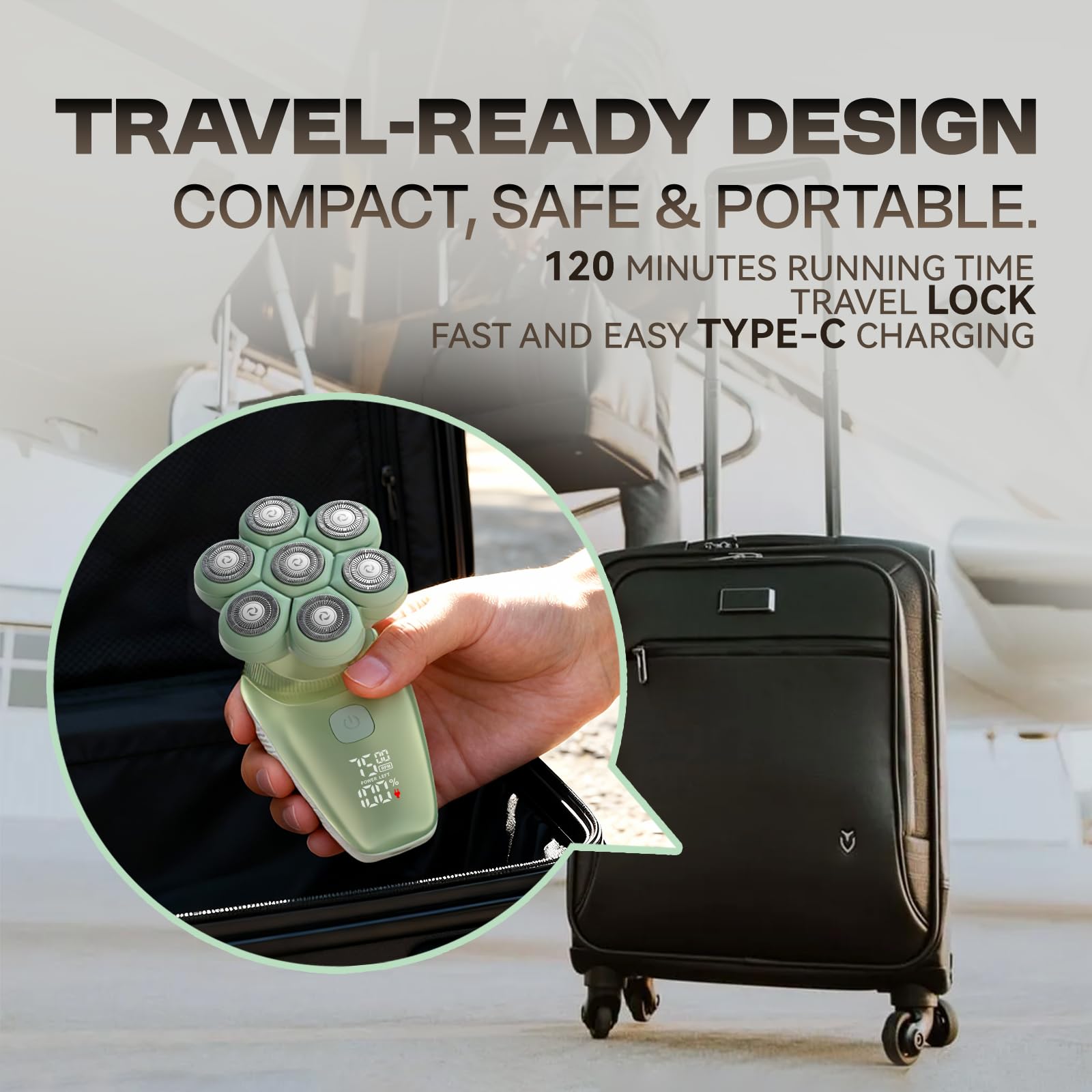 120-Min Battery + Type-C Charging:Enjoy up to 120 minutes of use on a full charge. Includes a travel lock to prevent accidental startup.