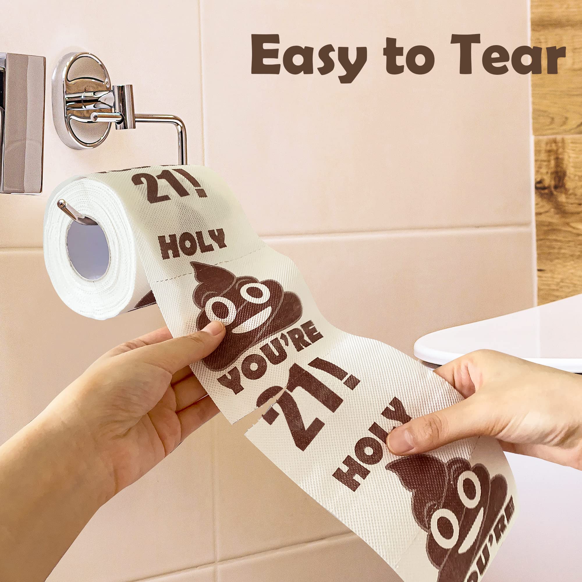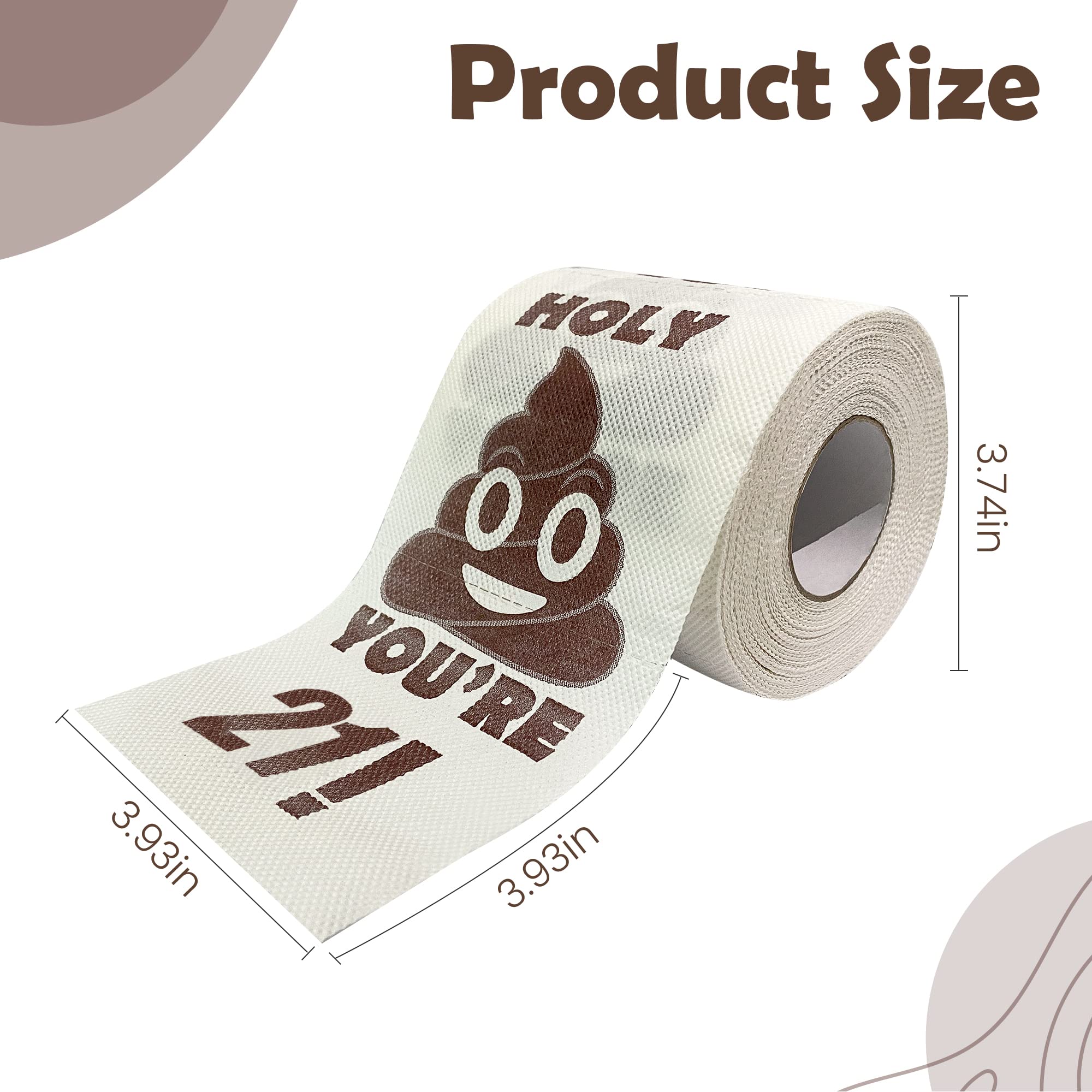 Durable & Practical: Our High-Quality funny Birthday toilet paper rolls are funny and practical! These comfy Birthday gift toilet paper gifts are great for use and super soft and absorbent! Need a laugh at the office or at home? Add to the 21sh birthday turners' restroom or use it as a streamer to decorate their home, and catch their funny reaction