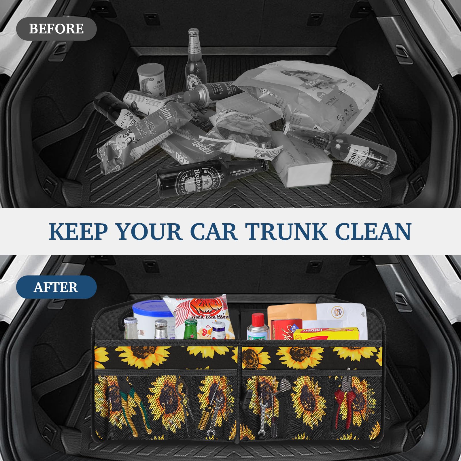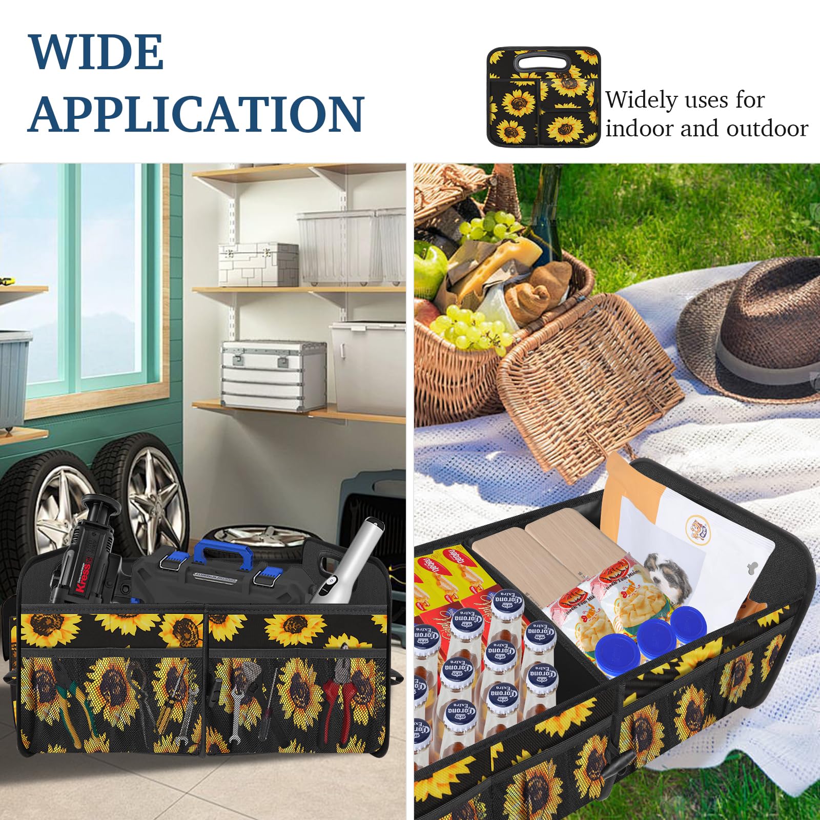 【Trunk Organizer for Car】:This is the optimal solution for maintaining a clean car interior as car accessories. Suitable for all vehicle types, like trucks, SUVs, vans, jeeps, cars, etc., and it's fantastic for transporting and arranging groceries, toys, athletic equipment, tools, and more in your trunk. Eliminate trunk clutter situation with this car organizer.