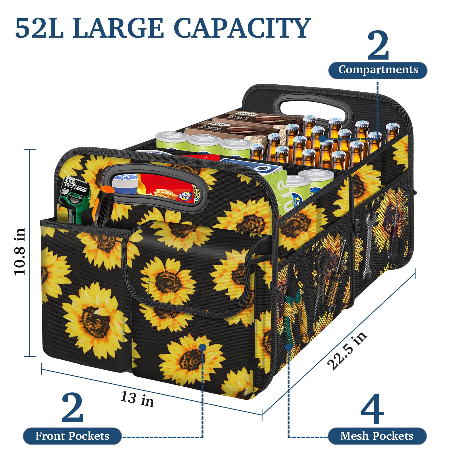 【Collapsible Trunk Storage】:The trunk organizer for suv collapsible multi compartments with removable divider can fold the size that you need in your car interior and fold away when not in use. Foldable and portable.