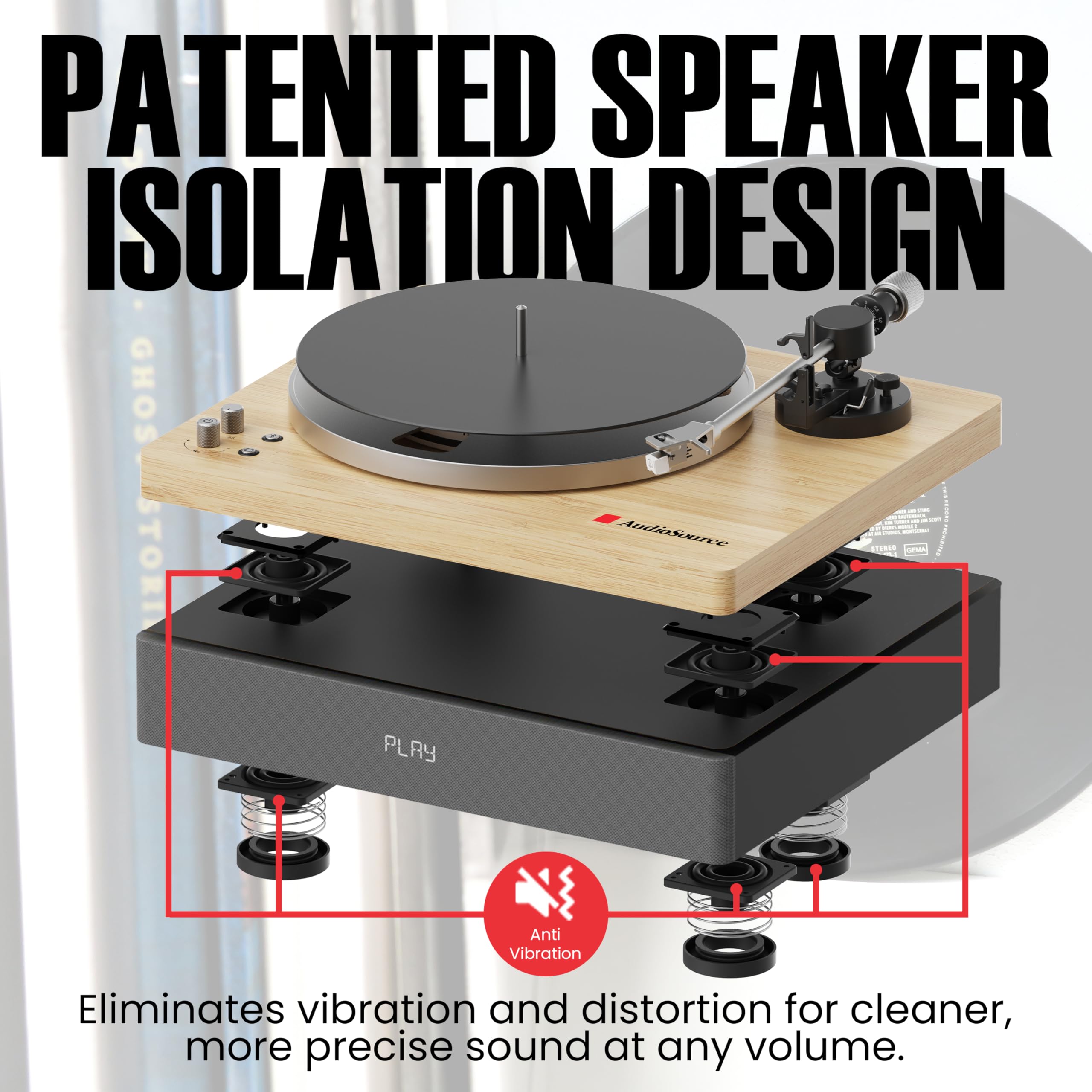 Patented Speaker Isolation Design - Our innovative design decouples the speaker from your turntable, eliminating acoustic feedback and vibration-induced distortion. Enjoy cleaner, more precise playback even on heavy bass tracks or at higher volumes, preserving both your vinyl and stylus while delivering optimal sound clarity.