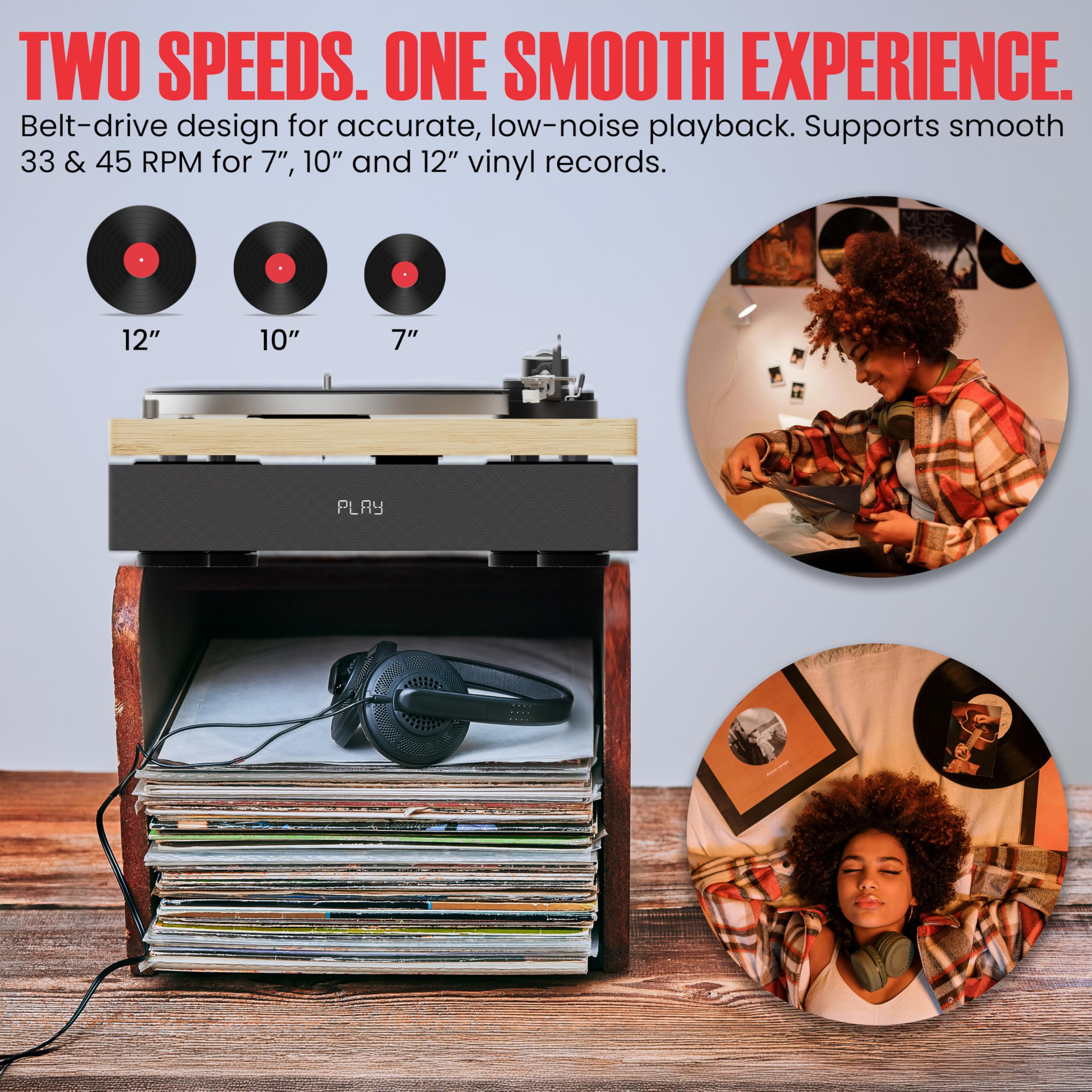 Versatile Vinyl Playback - Enjoy both 33 ⅓ LPS and 45s on a 2-speed belt-driven system engineered for audiophiles and nostalgia seekers alike, delivering acoustically warm, organic sound with reduced motor noise for a truly authentic listening experience.
