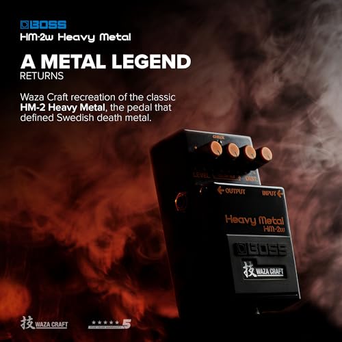 Produced from 1983 to 1991, the BOSS HM-2 Heavy Metal is a true legend in the history of distortion pedals. Its signature “chainsaw tone” with all knobs maxed is the defining voice of Swedish death metal, and the slightly milder sides of its personality can be heard on tracks from mainstream to shoegaze. After years of requests from hardcore HM-2 fans, the iconic stomp is now reborn three decades later in a special Waza Craft edition. The HM-2W delivers the authentic analog sound of the original in all its glory, coupled with lots of modern refinements for enhanced performance.
