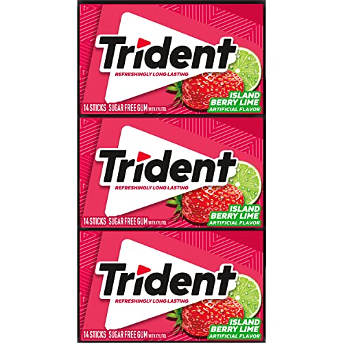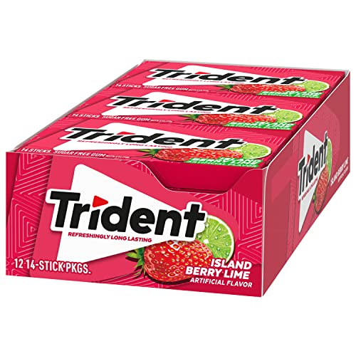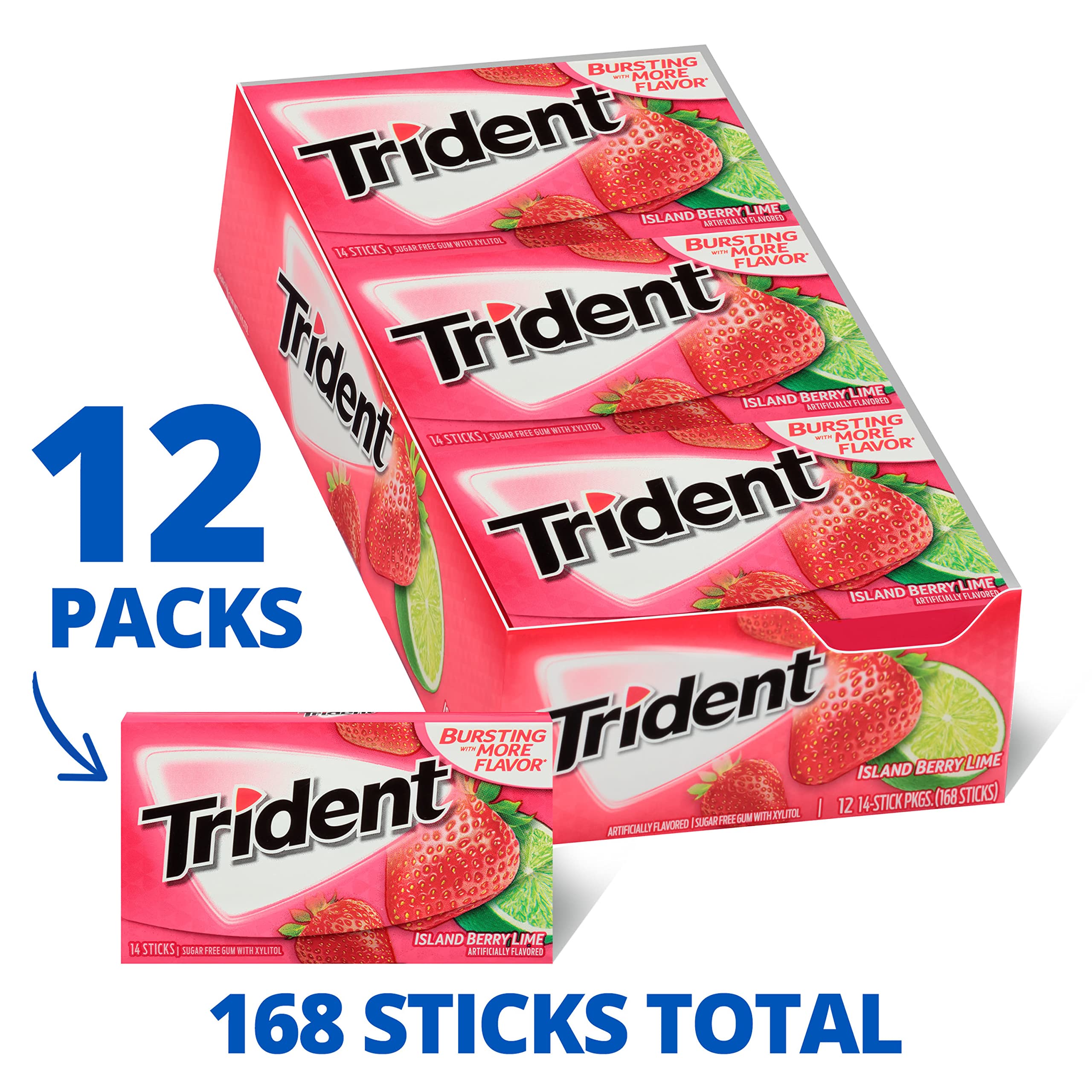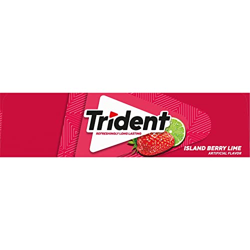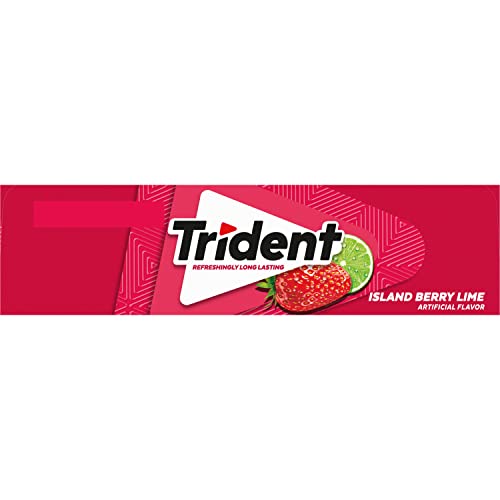 Trident Island Berry Lime Sugar Free Gum is a fruity and delicious way to get fresh breath and protect your teeth. Stranded on a desert island? You'll want flares and a few sticks of this tangy, sugar free berry gum. With 30% fewer calories than sugared gum, Trident lime gum is sweetened with xylitol, a naturally occurring sugar alcohol. The ADA Council on Scientific Affairs found that the physical act of chewing Trident sugarless gum for 20 minutes after eating stimulates saliva flow which helps to prevent cavities by reducing plaque acids and strengthening teeth. Bulk gum packs give you extra Trident berry gum to stock your company or small business, or stock up on chewing gum for party favors. The individual packs of gum are designed so the sticks stay inside, making it easy to toss in your car, backpack or desk drawer. The sticks of fruit gum in each pack of gum are individually wrapped for extra freshness. Whenever you need a long lasting chew, choose Trident Chewing Gum.