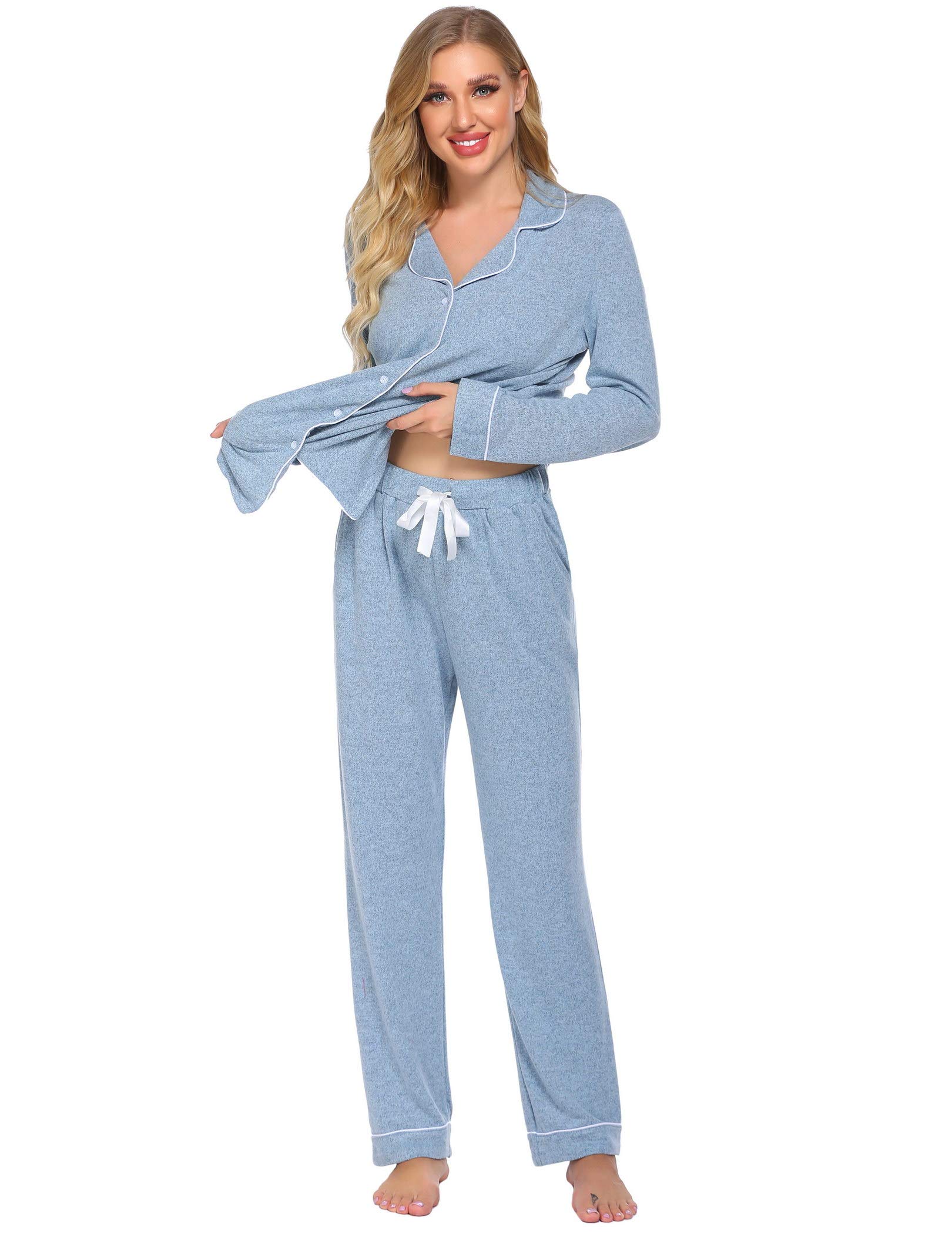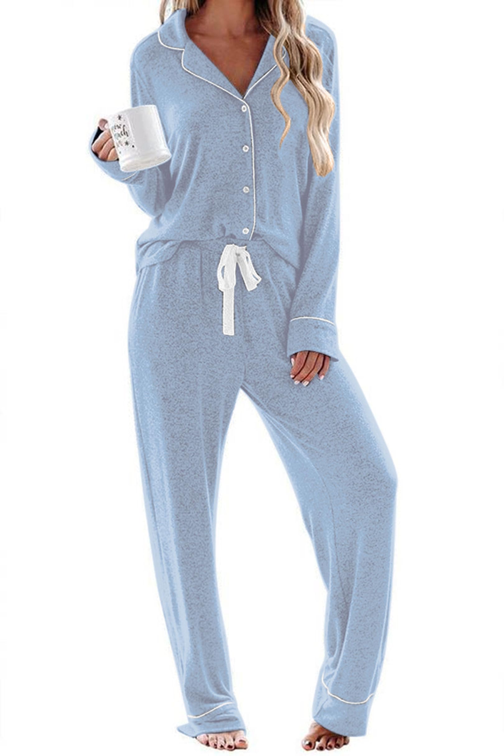 Features:Two Piece Pajama Set featuring classic and casual loungewear style.Long sleeve sleepwear top and long pajama pants set.High quality material and this sleep set with superior stitching and perfectly-lined hems. Breathable and Comfy sleepwear set
