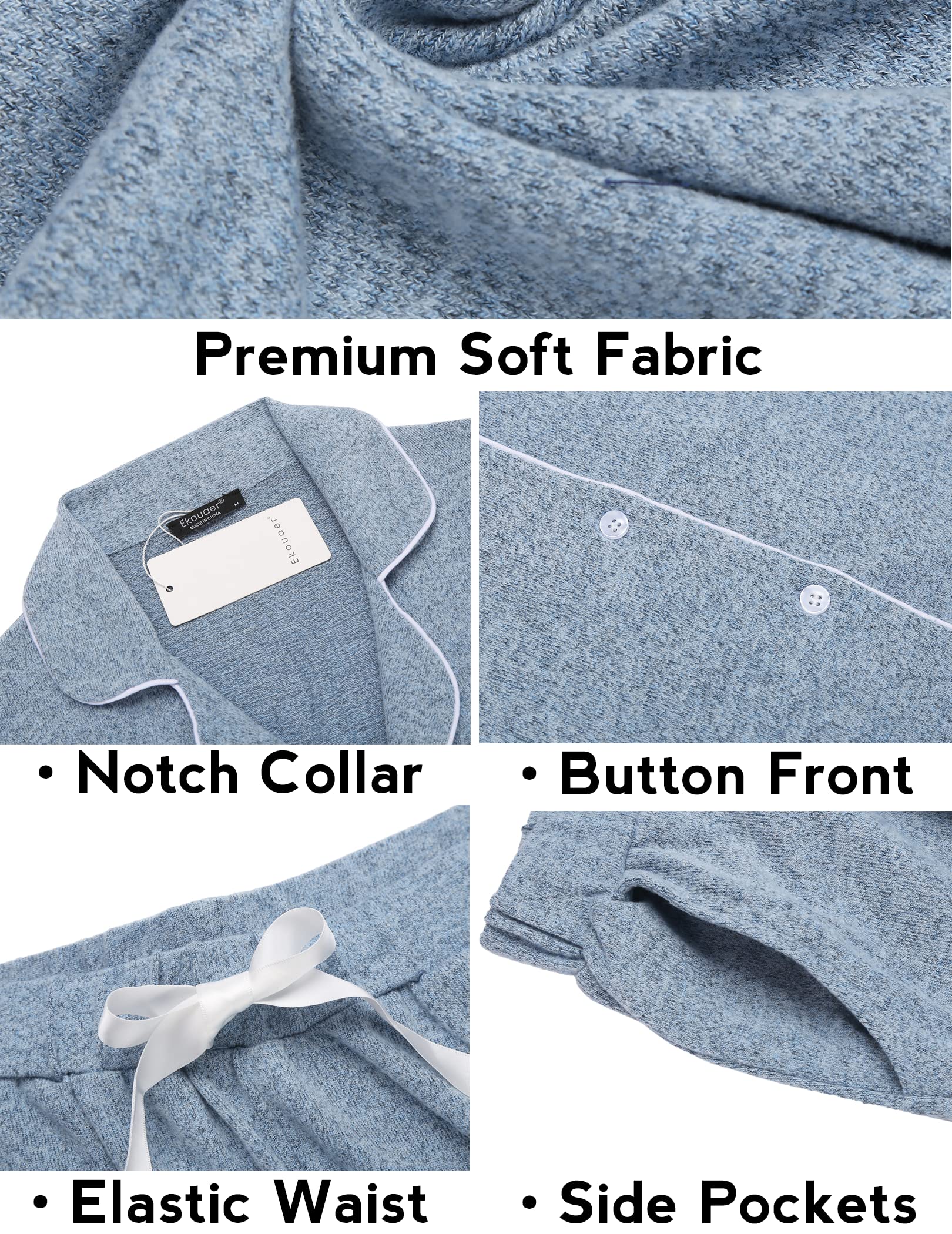 Material: 95% Rayon, 5% Spandex.Soft,cozy and lightweight Ekouaer pajama set