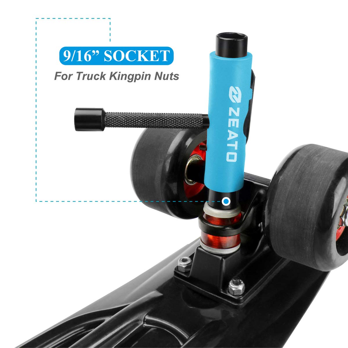[Multi-functional Tool]: A multi functional skateboard T tool that allows you to adjust axle nuts, mounting hardware, and the kingpin nut on the top of the truck; which is perfect for completing skateboard assembly