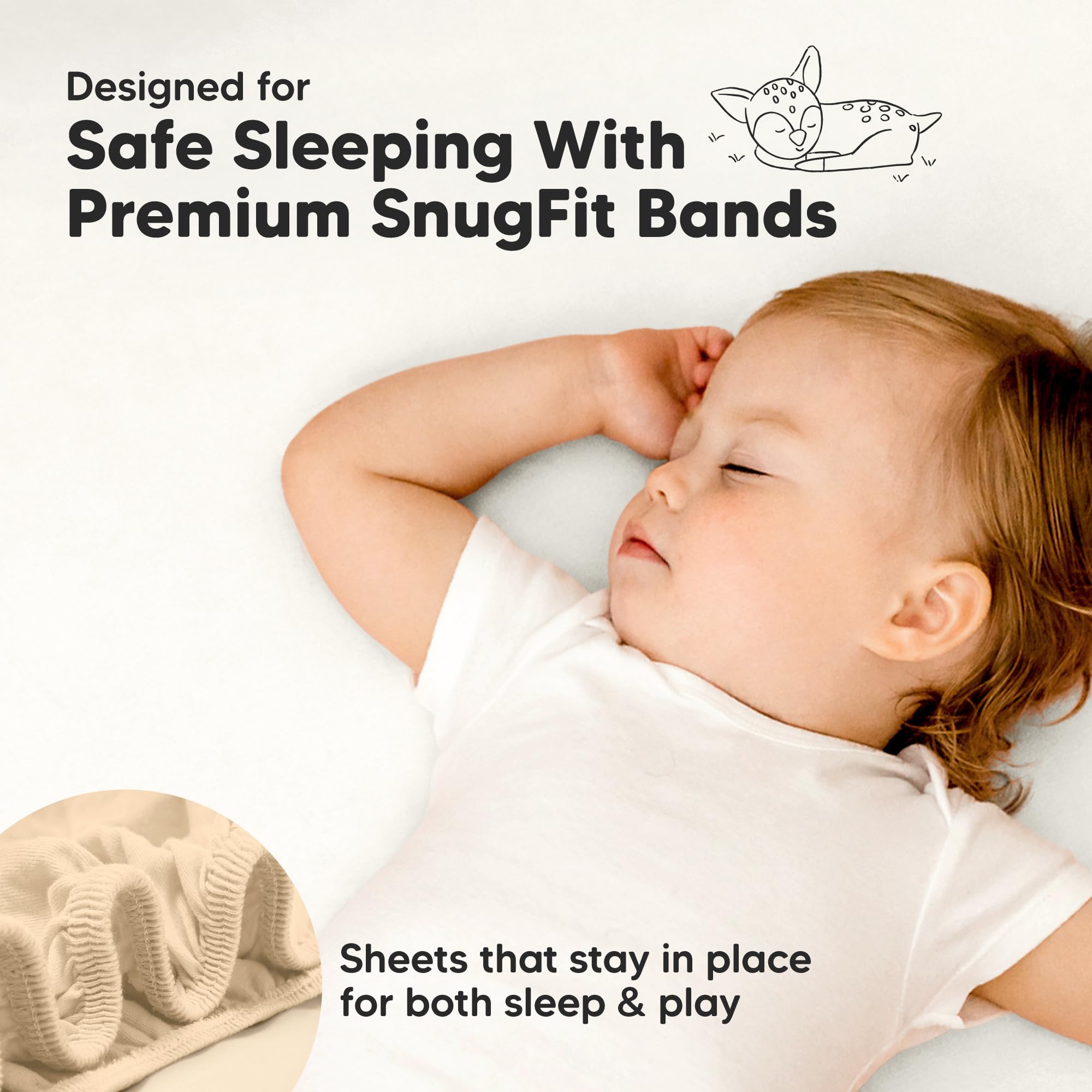 SnugFit Fabric - Featuring SnugFit fabric technology, the Isla Mini Baby Crib Sheet stretches well for ease of fitting and removal of the mini crib playard sheets from pack n play mattress pads. No more struggling with rigid baby sheets.