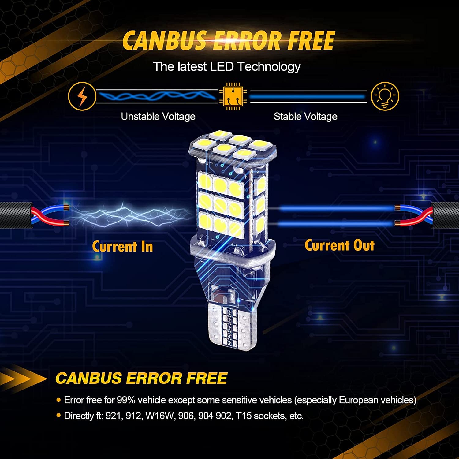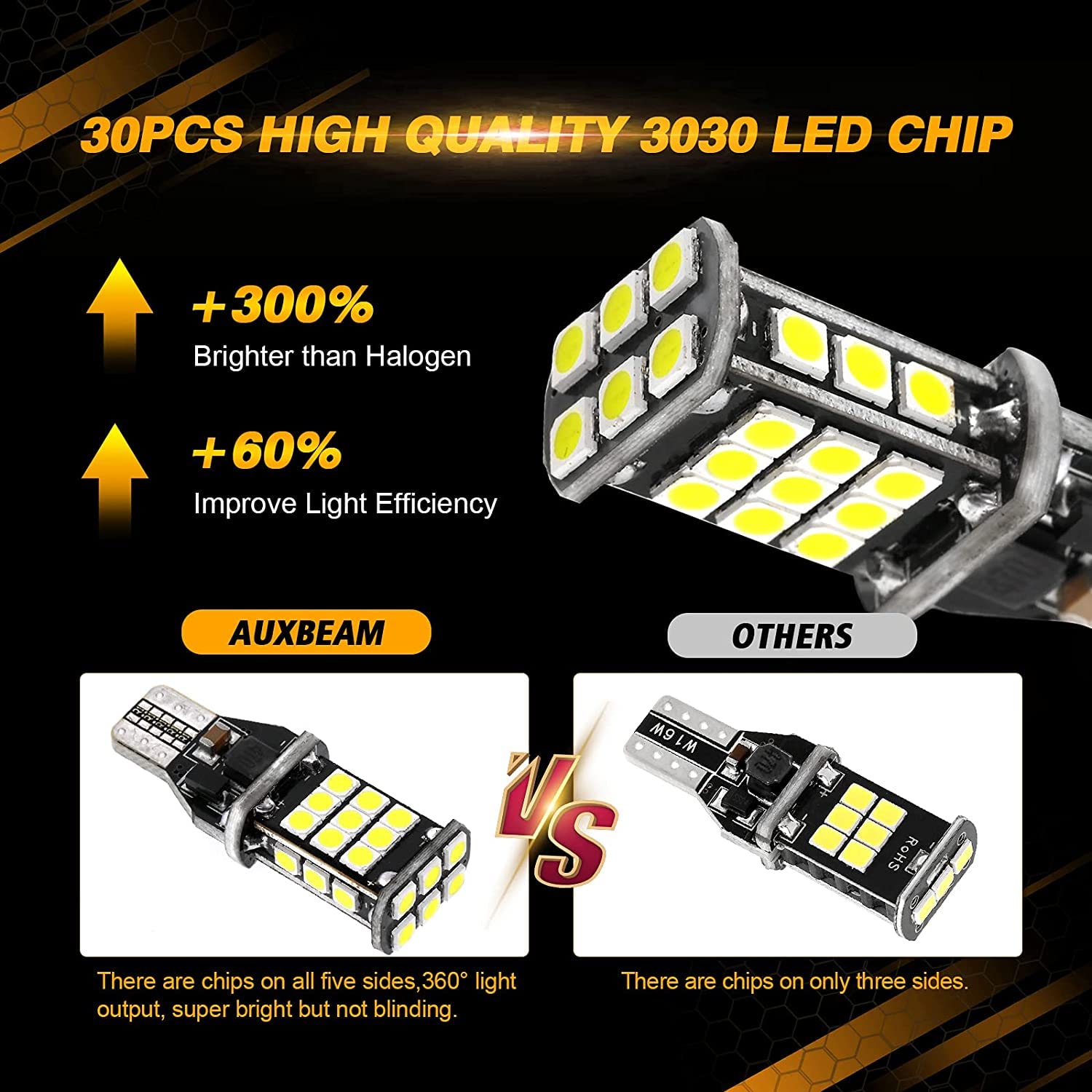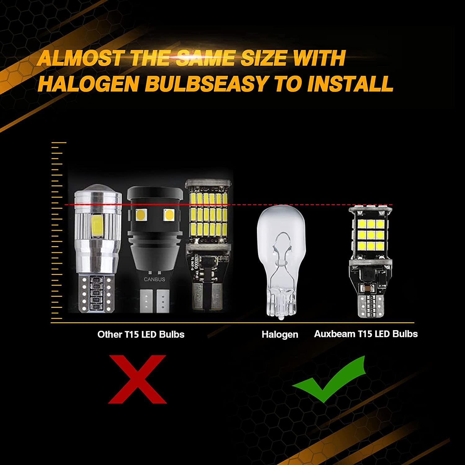 Fit Size: Auxbeam 912 921 LED bulbs are compatible with 912, 921, 904, 906, 916, 917, 920, 922, W16W, 2835, T15. Used for backup reverse lights and cargo light.