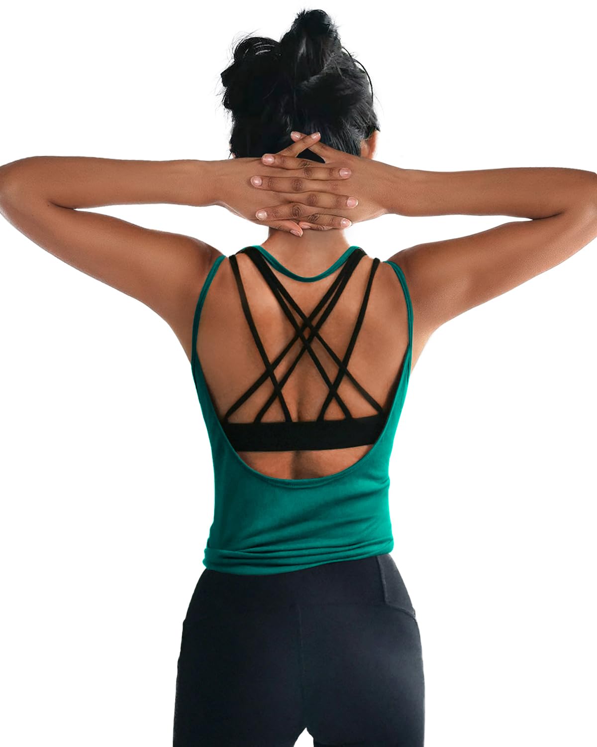 Design : This top is made of a light stretchy knit fabric. It is with unique and interesting backs, has a cooling effect on the skin, just what you want to stay cool in the summer while working out