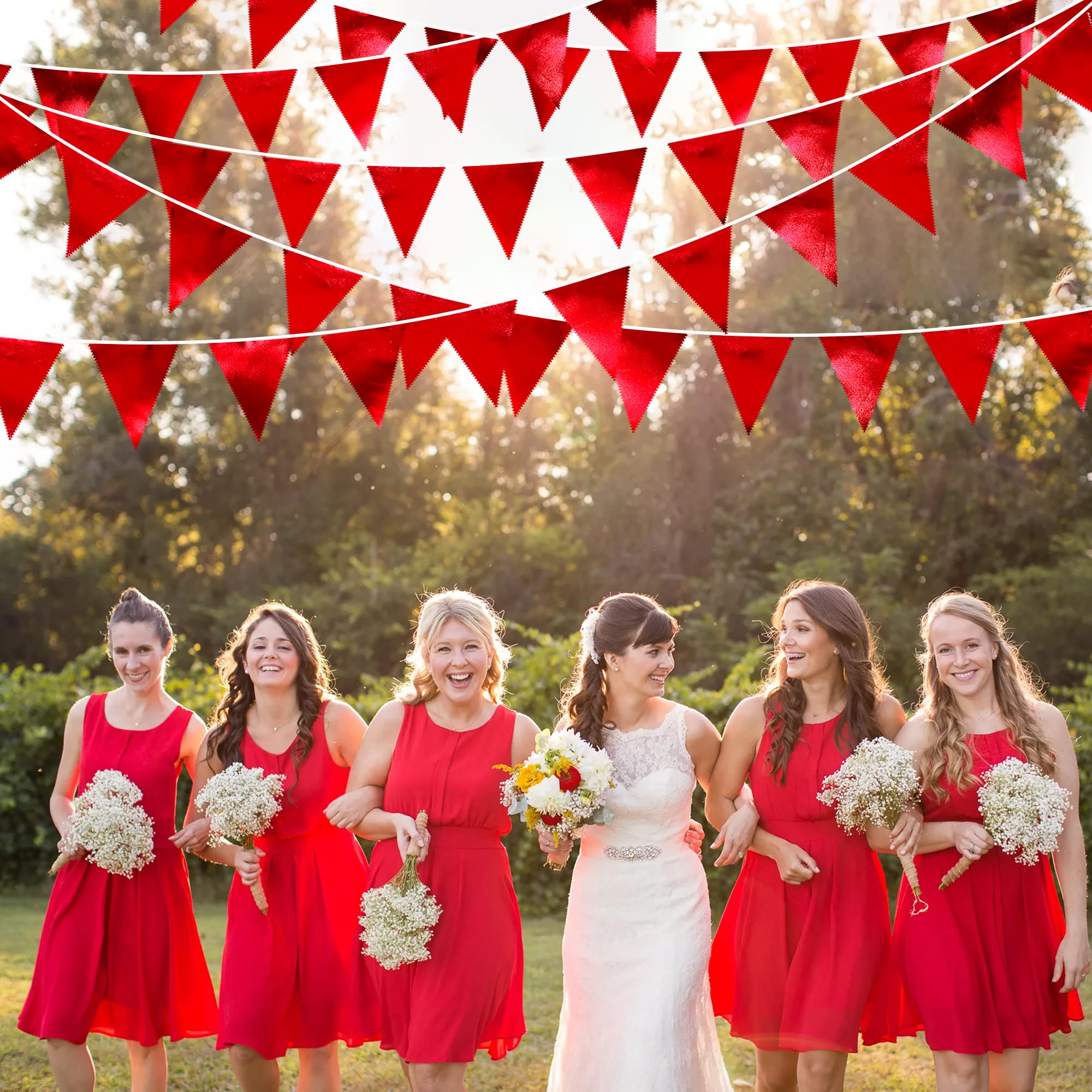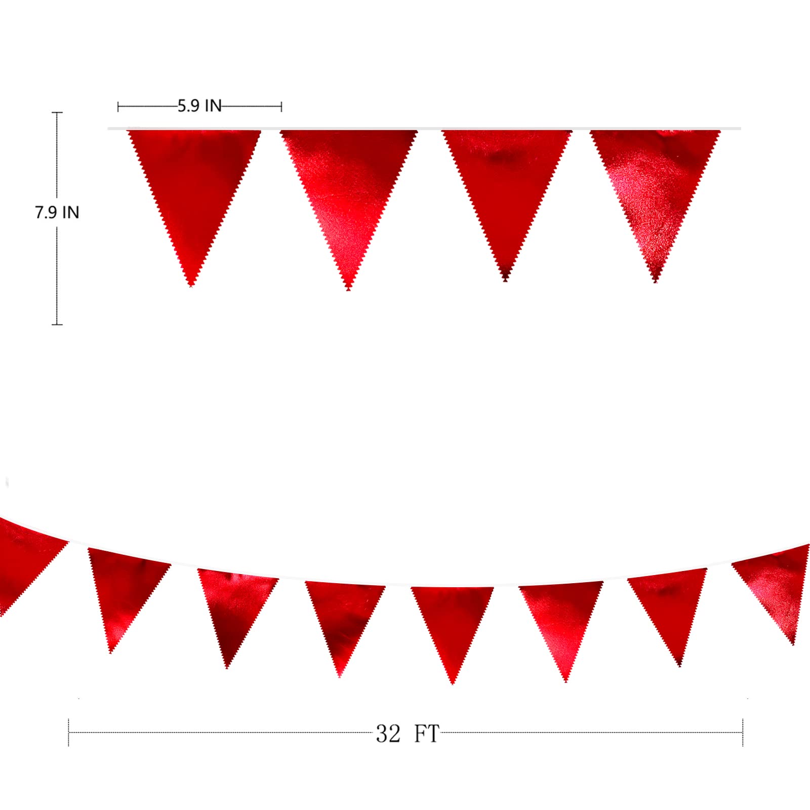 PACKAGE CONTAINS- 1 packs of red party fabric pennant banner, Total 9.75meter/32feet with 36pcs flags.Size of each flag is 7.9 x 5.9 inch.