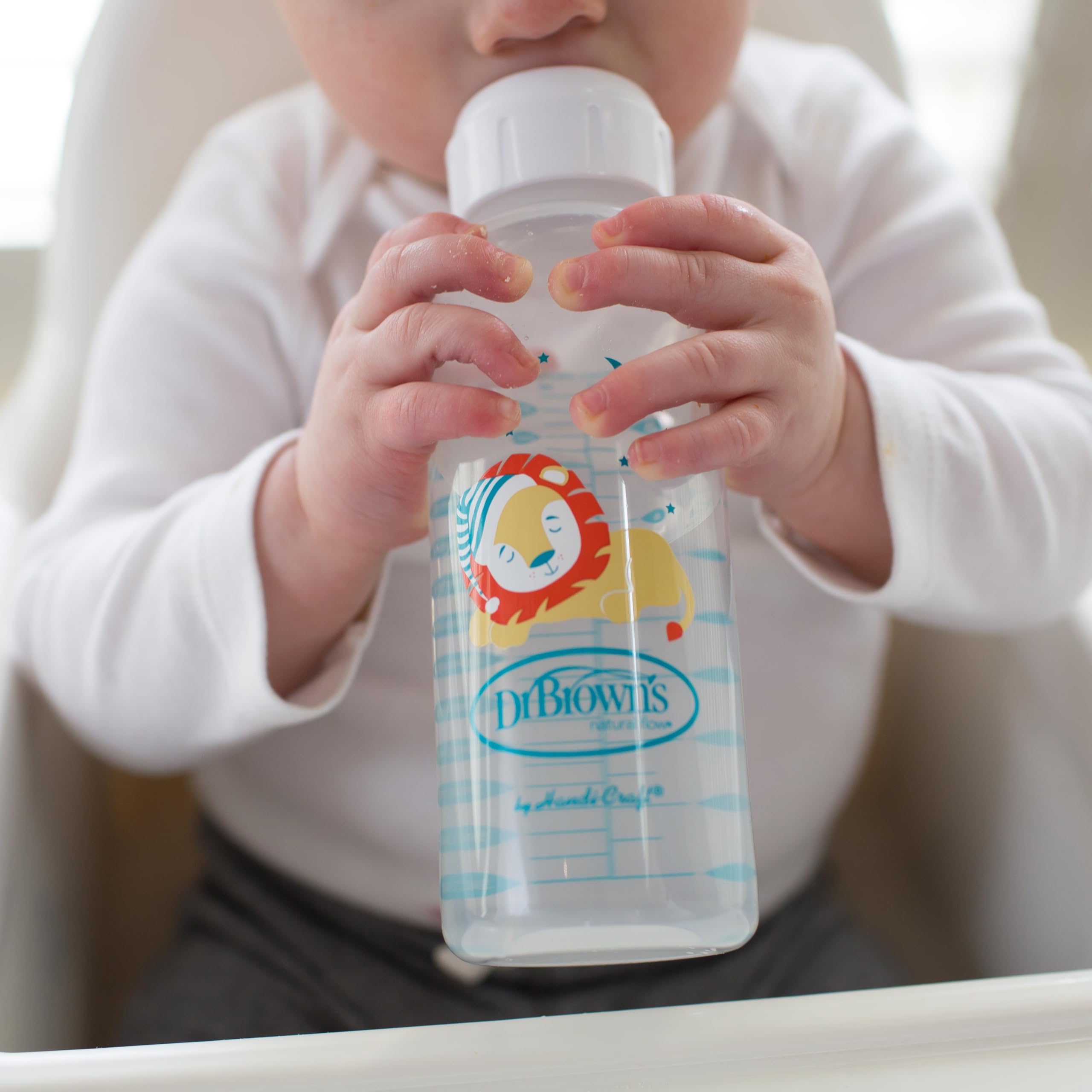 Dr. Brown’s® Milestones™ Sippy Bottle is the perfect first step for baby’s transition from bottle to cup. Introducing a sippy spout has never been simpler. The soft silicone sippy spout is used in place of the nipple on the Dr. Brown’s bottle that’s already familiar to baby, while the snap-on cap keeps the spout clean when on-the-go. The sippy spout fits any Dr. Brown’s® Options+™ Narrow bottle after the internal vent is removed. All parts are safe for use in dishwasher (top rack only), electric and microwave sterilizers or boiling water. 6m+.