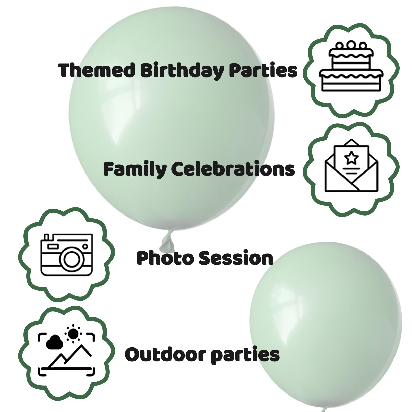 The 12 inch sage green Latex Party Balloons included in the package can make your Party Decoration such as Birthday Party, Baby Shower,Wedding, Halloween or Christmas Party, etc. have enough sage green Balloons to decorate.