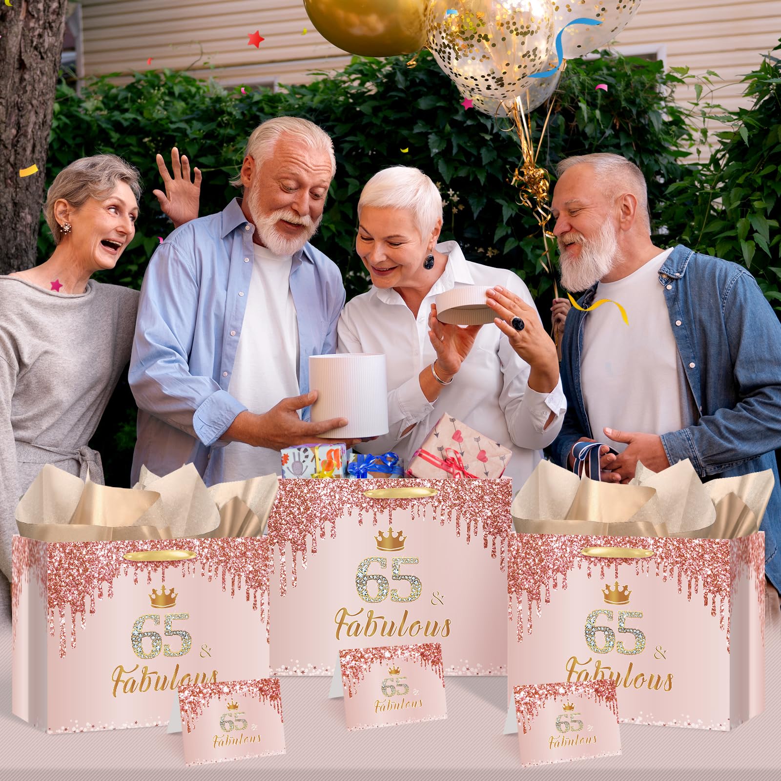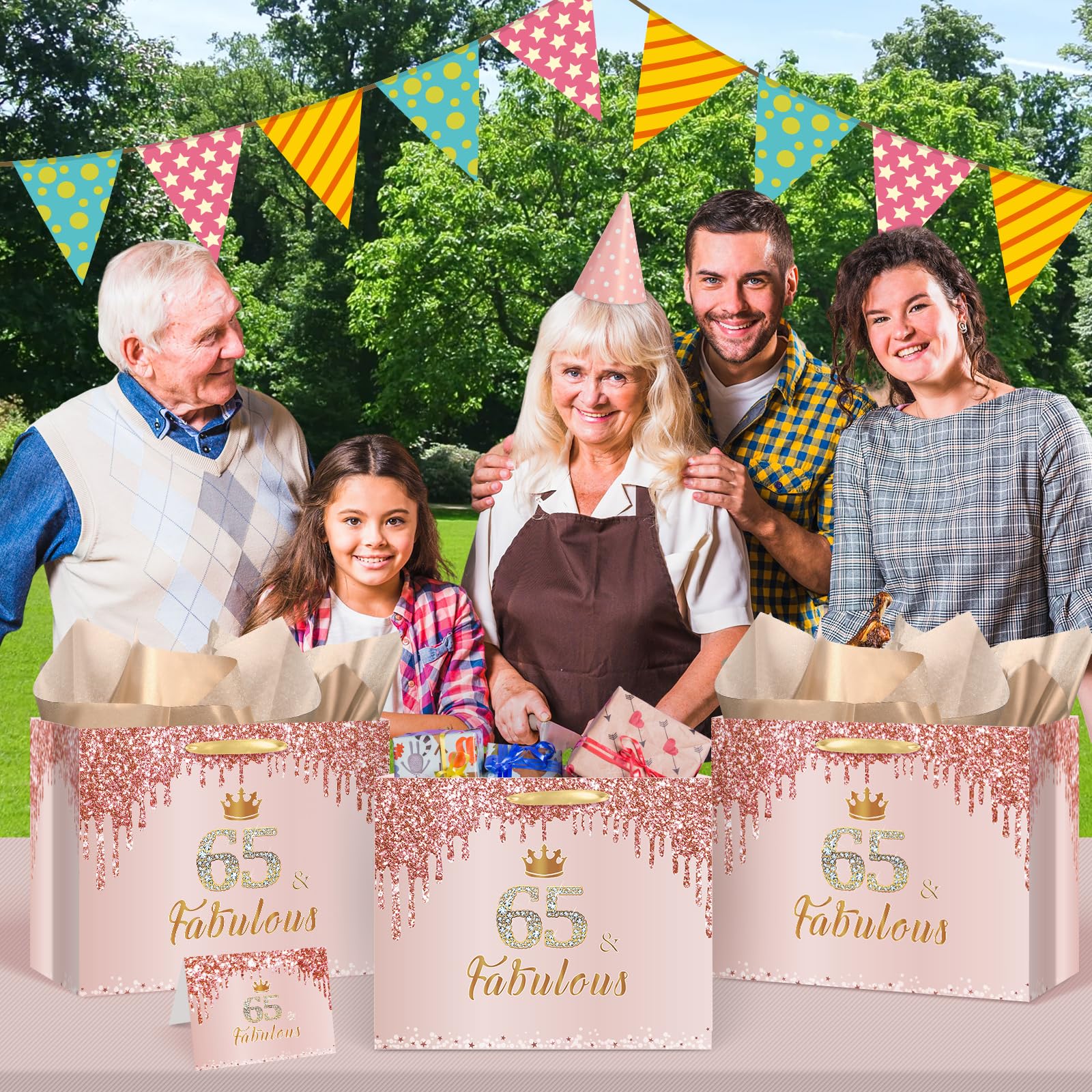 đă65 & Fabulous Birthday Gift BagăThe rose gold 65th birthday gift bag for women comes in rose gold, gold and silver, which features glitter rose gold prints and 65 & Fabulous.