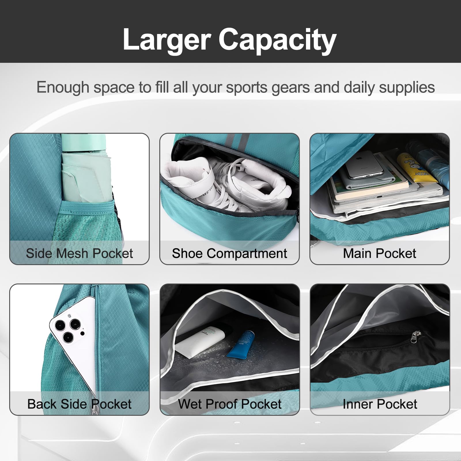 Dry/Wet Separation: Our gym bag is designed with multi-pocket. There have independent shoes compartment and wet proof inner pocket, which makes it convenient for gym-goers, swimmers, and anyone who needs to keep their gear separated and organized
