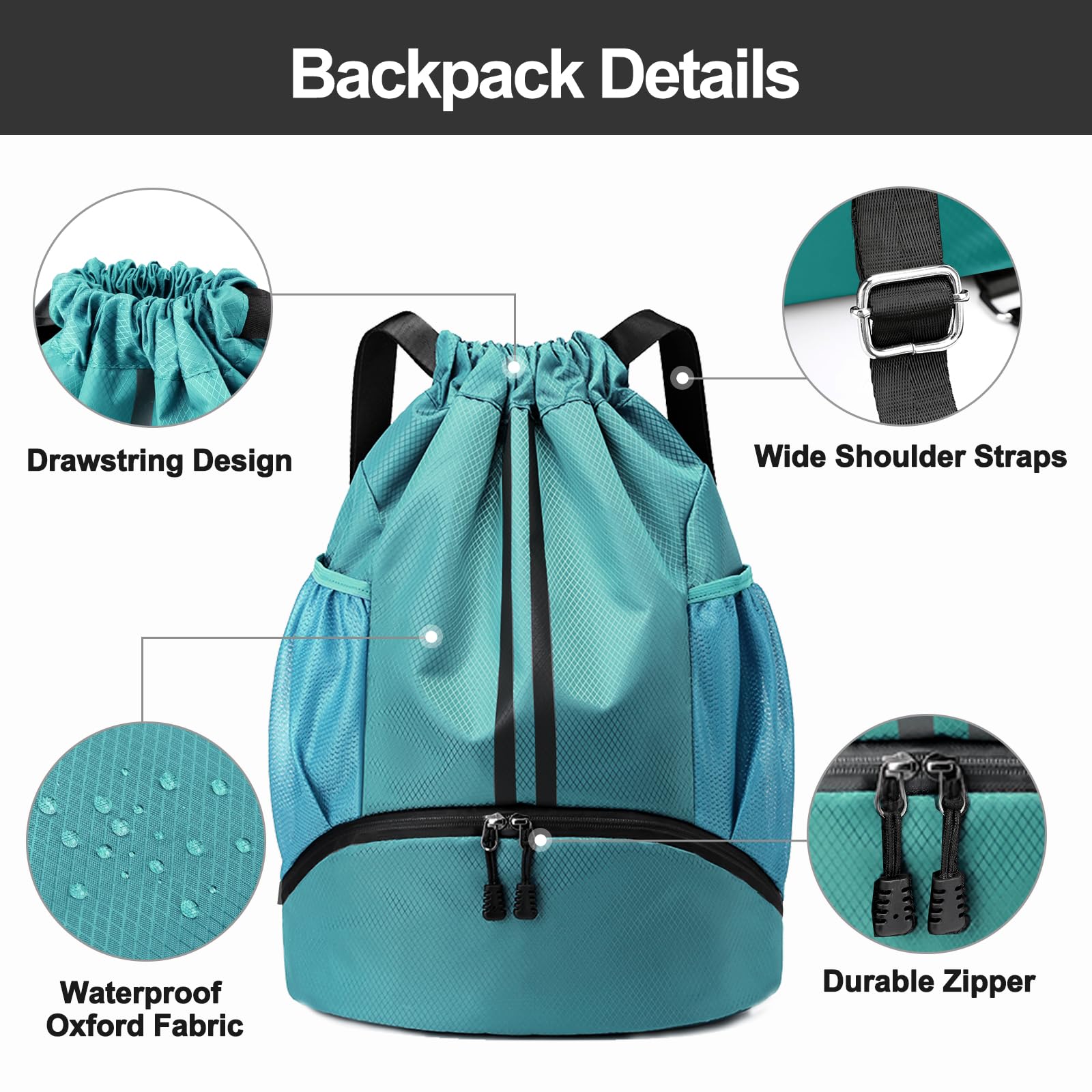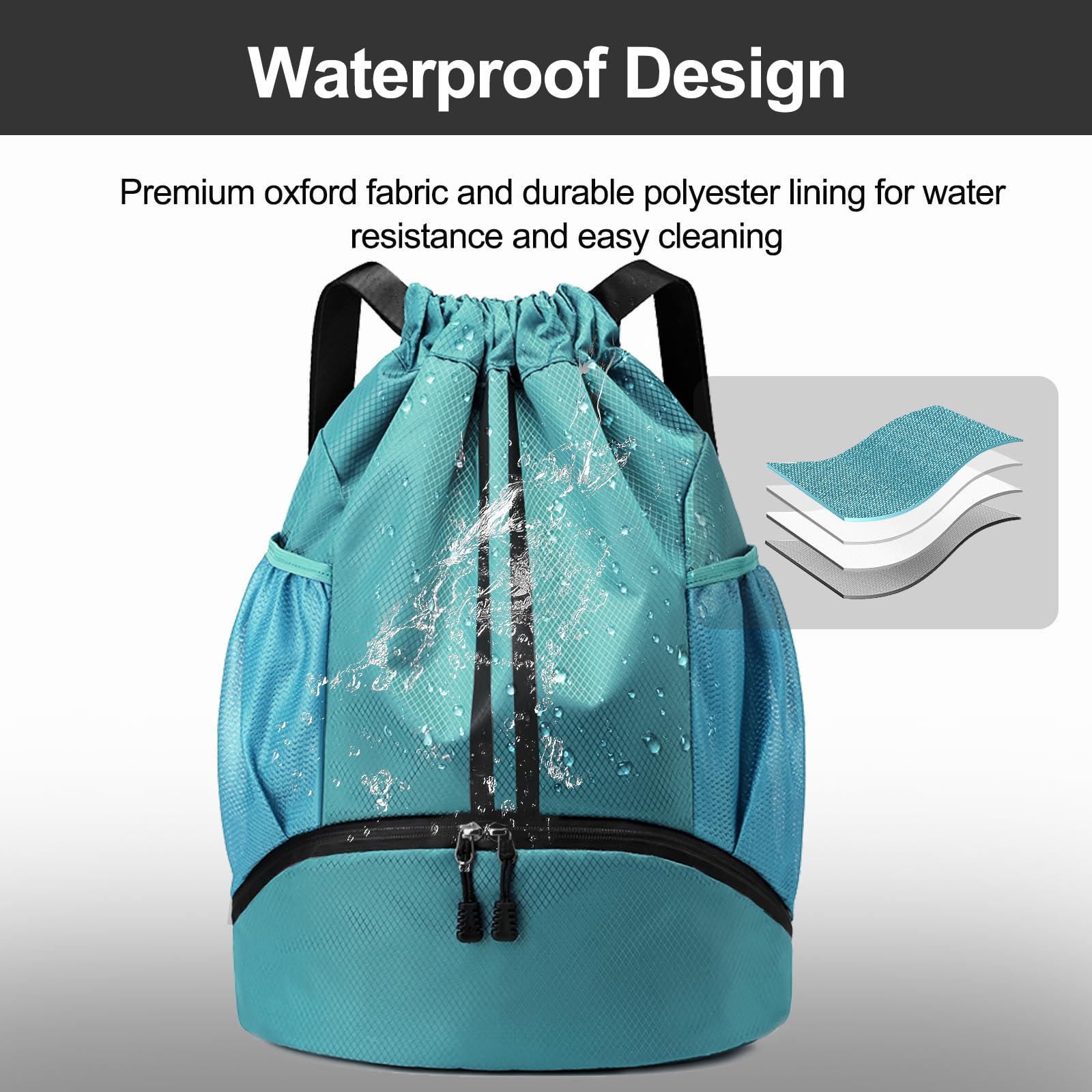 Water-Proof Material: The Hoedia Drawstring Backpack is perfect for gym and swim enthusiasts as it is made of durable water-resistant oxford cloth, keeping your belongings safe and dry