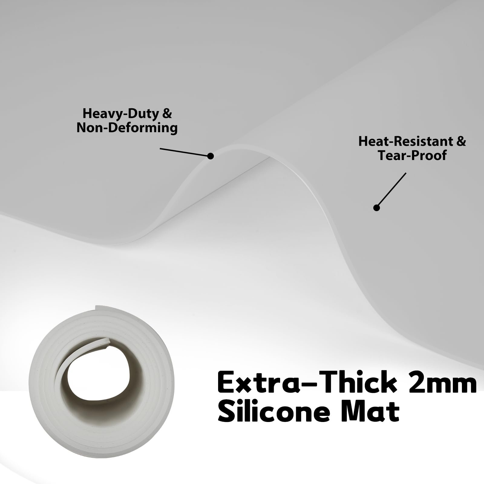 Extra Thick 0.08Inch/2MM: 2MM thickness silicone placemat ensures the durability, since this extra thick silicone crafting mat is 5 Times as thick as other cheap silicone mats (0.4mm).
