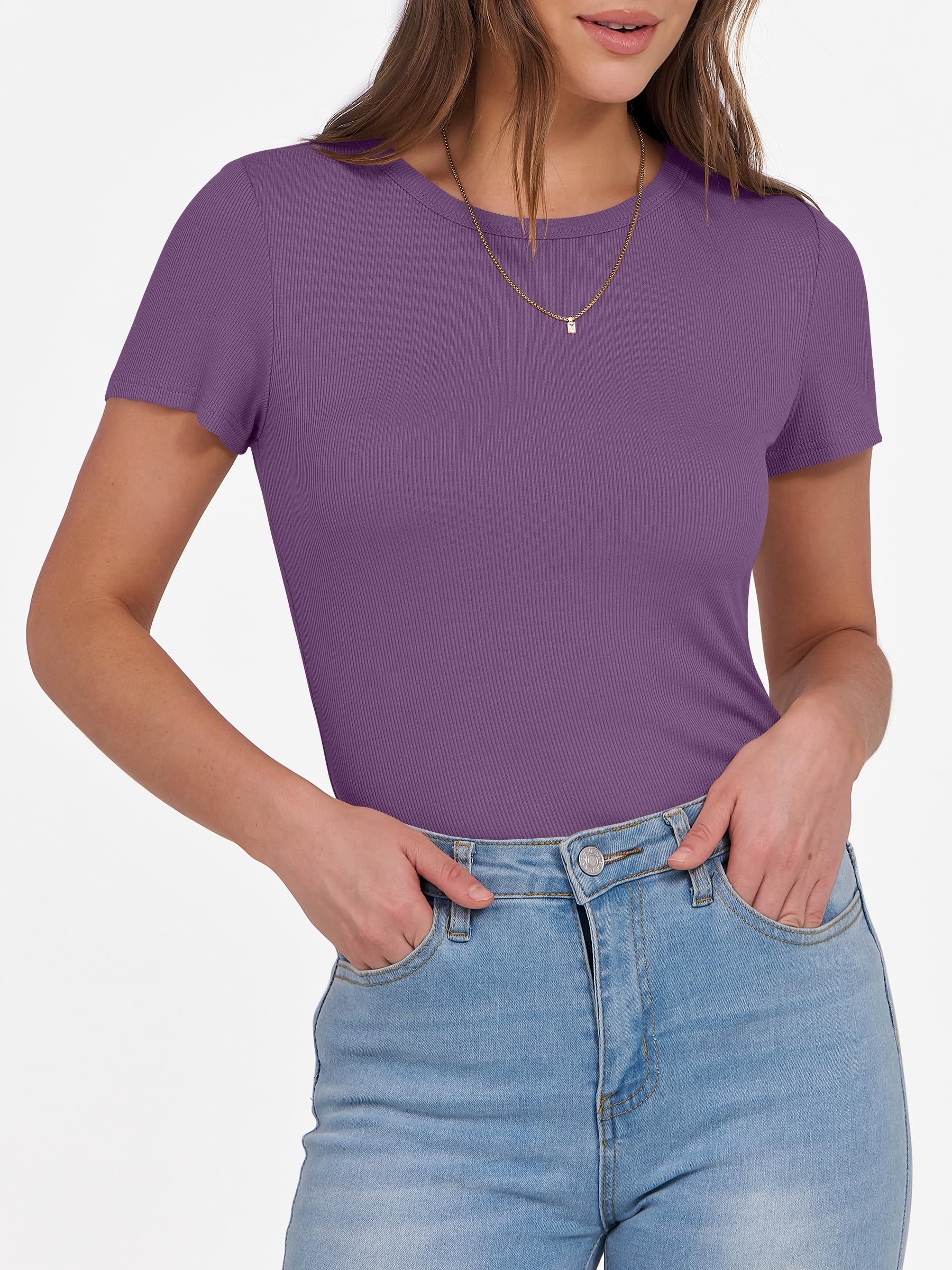 Features - Get summer-ready with our comfy and soft knitted fabric, perfect for all occasions. Our short sleeve crew neck design is versatile - wear it to school, the gym, the beach, or casual daily wear. The slim fit highlights your perfect figure, making you feel confident and stylish wherever you go. Comfortable, lightweight, and oh-so-flattering, our basic summer slim tee is an essential addition to your wardrobe.