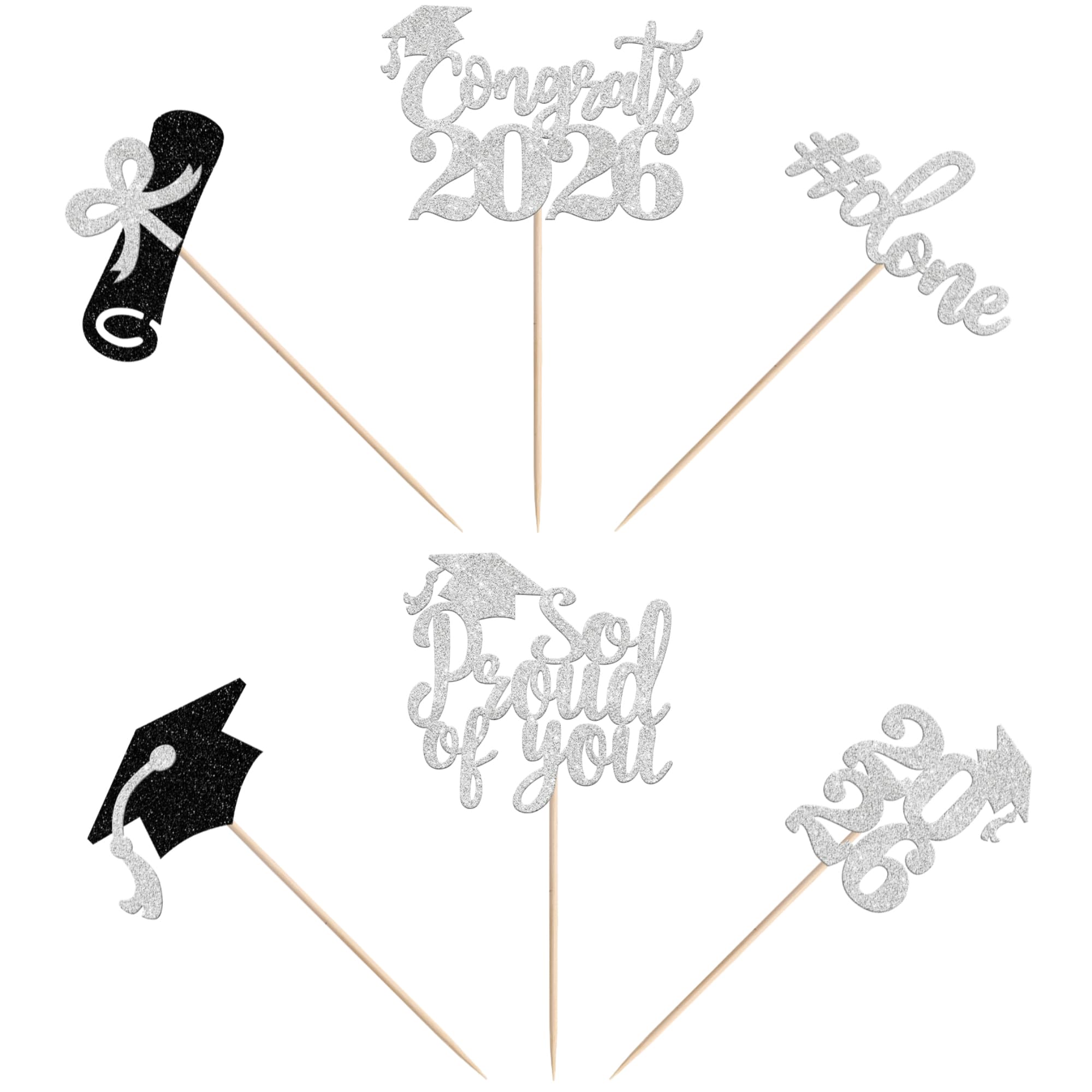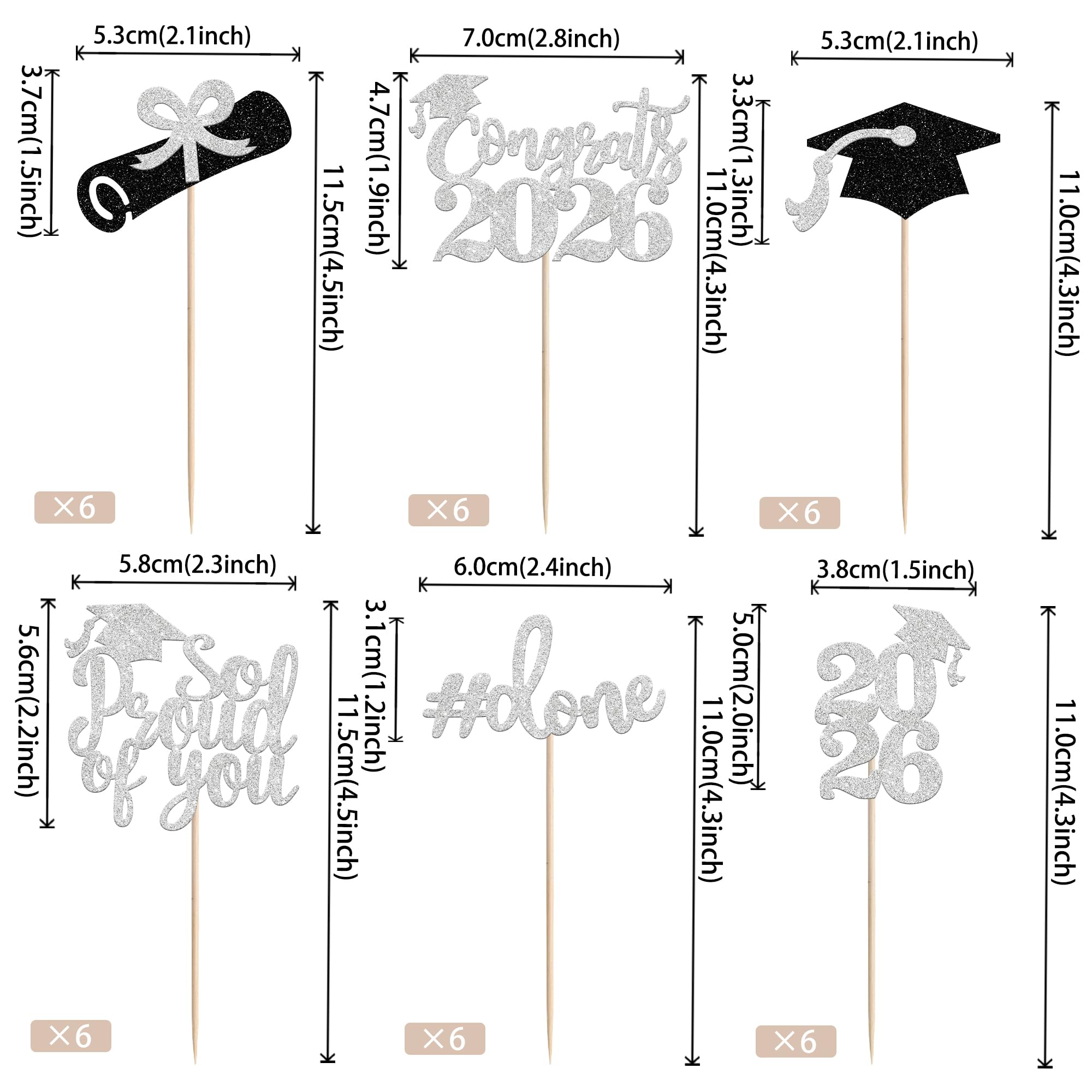 2026 Graduation Theme Party Cupcake Toppers Decorations Perfect for 2026 graduation theme party cupcake decorations, such as kindergarten, primary, junior, senior high school, college, Master or Ph.D. graduation. Pack of 36 pcs, 6 pcs of each design. The size is 2*3.7/2.8*4.3/2*3.7/1.5*4.4/2.4*4.1/2.3*4.7 inch ( with stick ) Made of high quality paper card stock,thick and thick and sturdy. These cupcake toppers are single glitter, the back is white, and they are intended for decoration only, please do not put them in oven or microwave. If the item you received has any defects, please contact us immediately. we will deal with it within 24 hours.