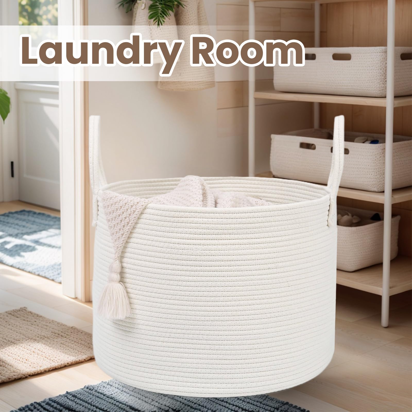 Natural Handwoven Quality -- Crafted meticulously by hand from natural cotton rope, each basket is a unique, eco-conscious piece. Free from plastics and harsh chemicals, it offers lasting durability for worry-free use.