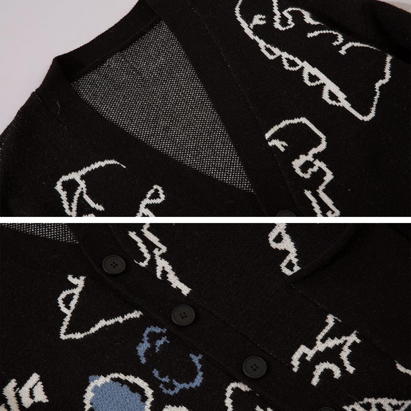 Oversized Style: Oversized button down cartoon knit cardigan coat, fits most body figures, on trend and so retro, streetwear modern aesthetic sweater for teens, will never out of date