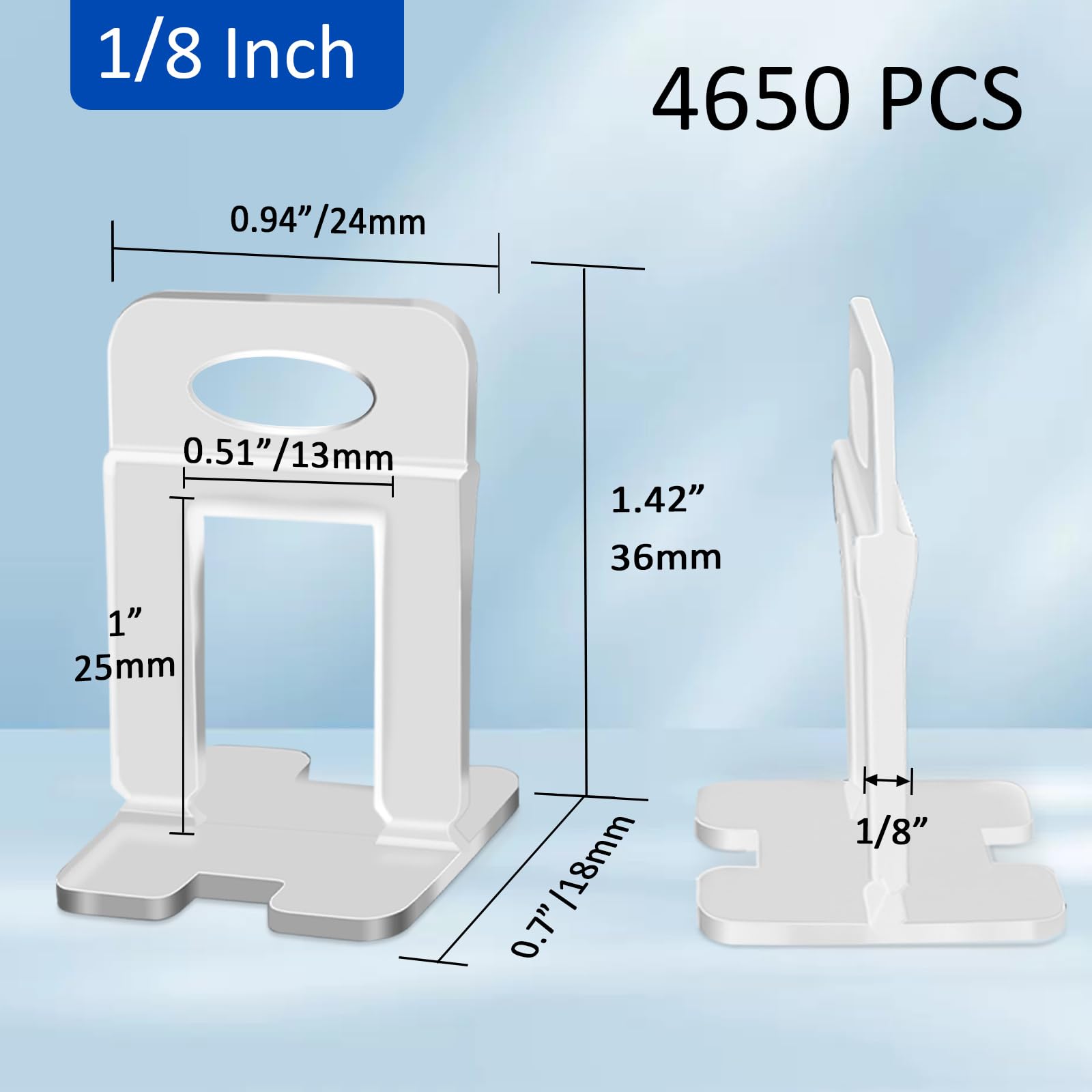 Tile Clips: 4650 tile spacer clips (Not included wedges and plier). Tile clips are used to fix the position of tiles and avoid movement, and can be used for tiles 1/8 "(3mm) to 1/2" (12mm) thick
