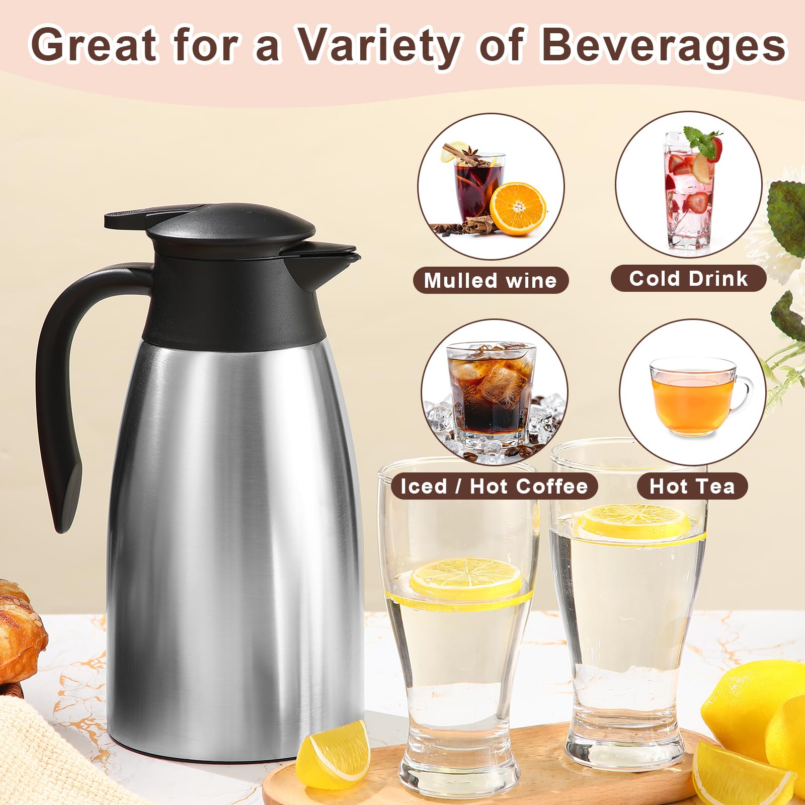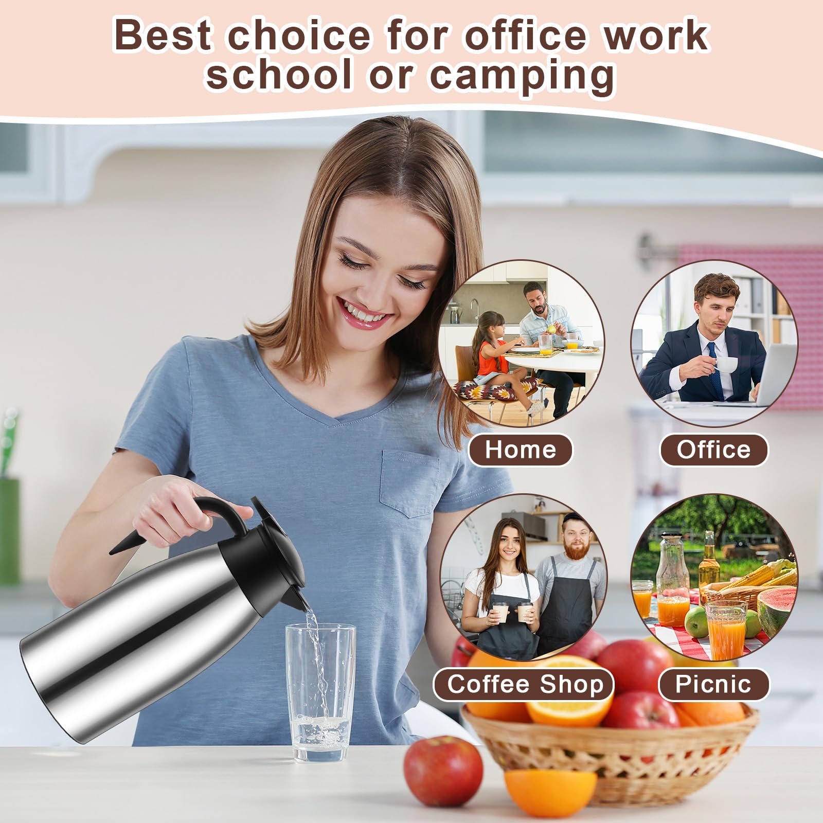 Thermal and Practical: the stainless steel coffee carafe features double walled vacuum insulation designs, and can keep your drinks hot and cold for a long time, and the lids can help to better keep the proper temperature, allowing you to enjoy them easily
