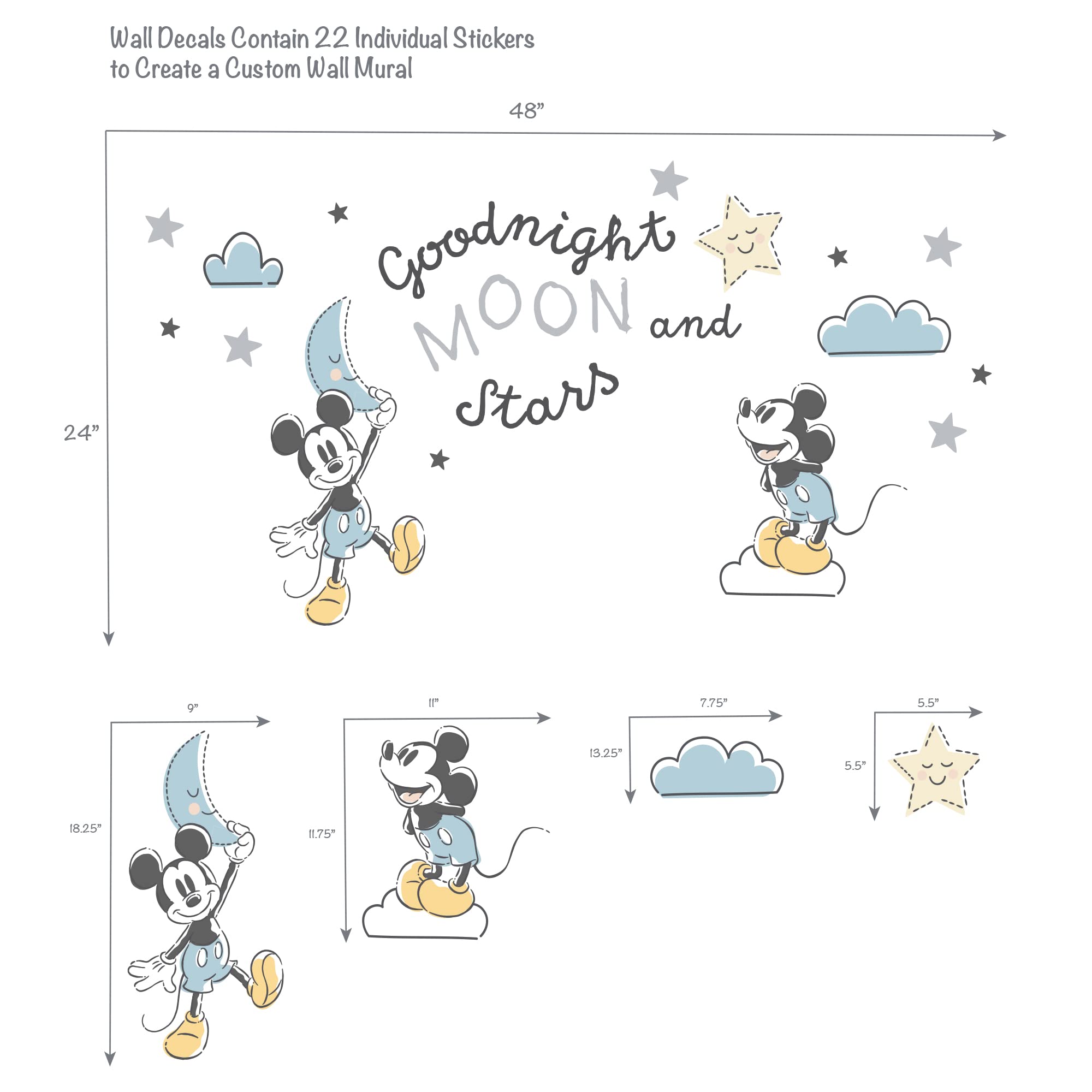 Features 2 Mickeys, stars, clouds, a crescent moon, and verbiage