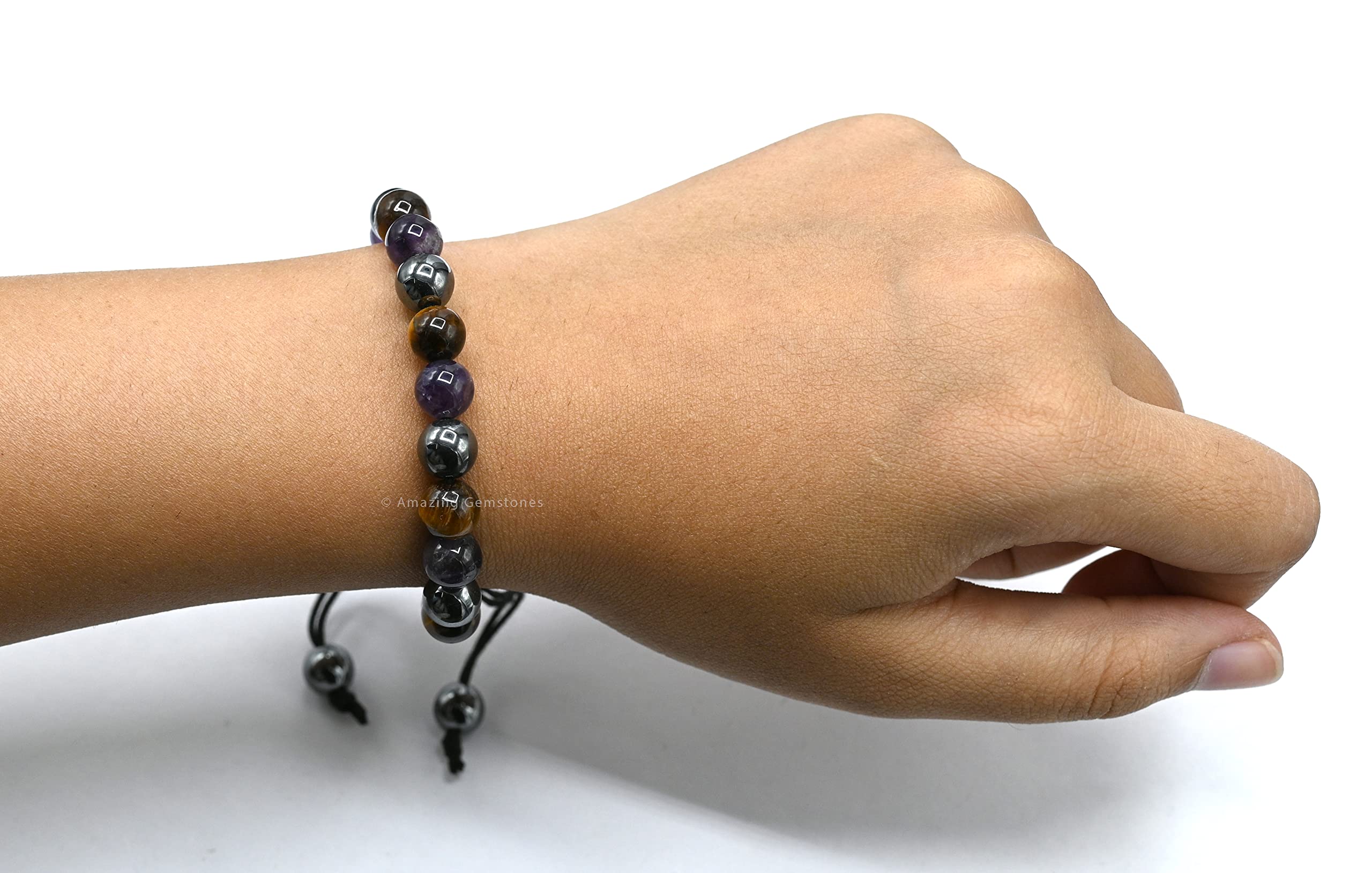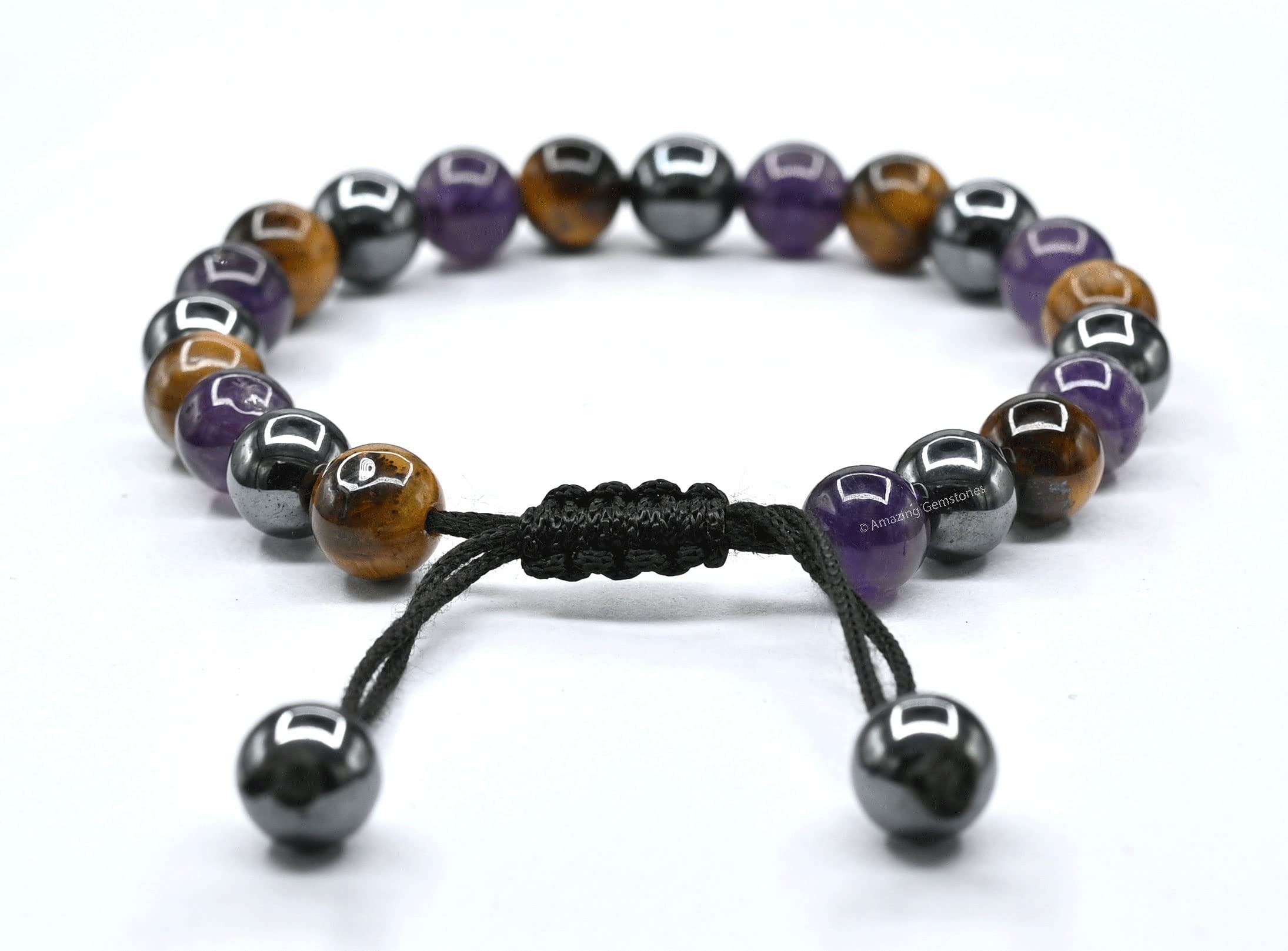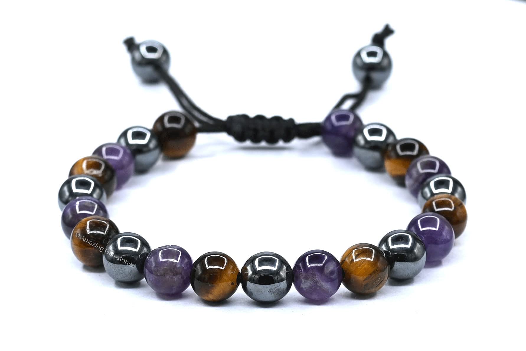 Bracelet for Quit Smoking contains real crystal beads Hematite, Tiger Eye and Amethyst. Hematite for Focus, Tiger Eye for Strength & Amethyst for Tranquiliser Stocking Stuffers.
