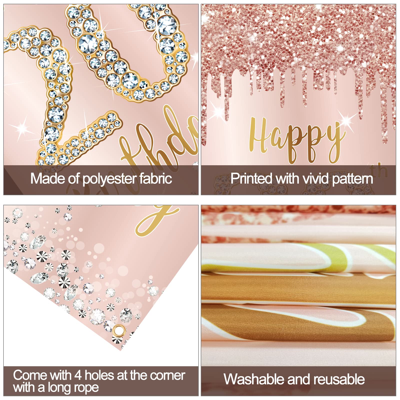 [You will get] - Pink rose gold happy 20th birthday door banner decorations, 72.8 X 35.4 inches, enough for 20th birthday party decorations to make your 20 birthday party full of vitality and fun.