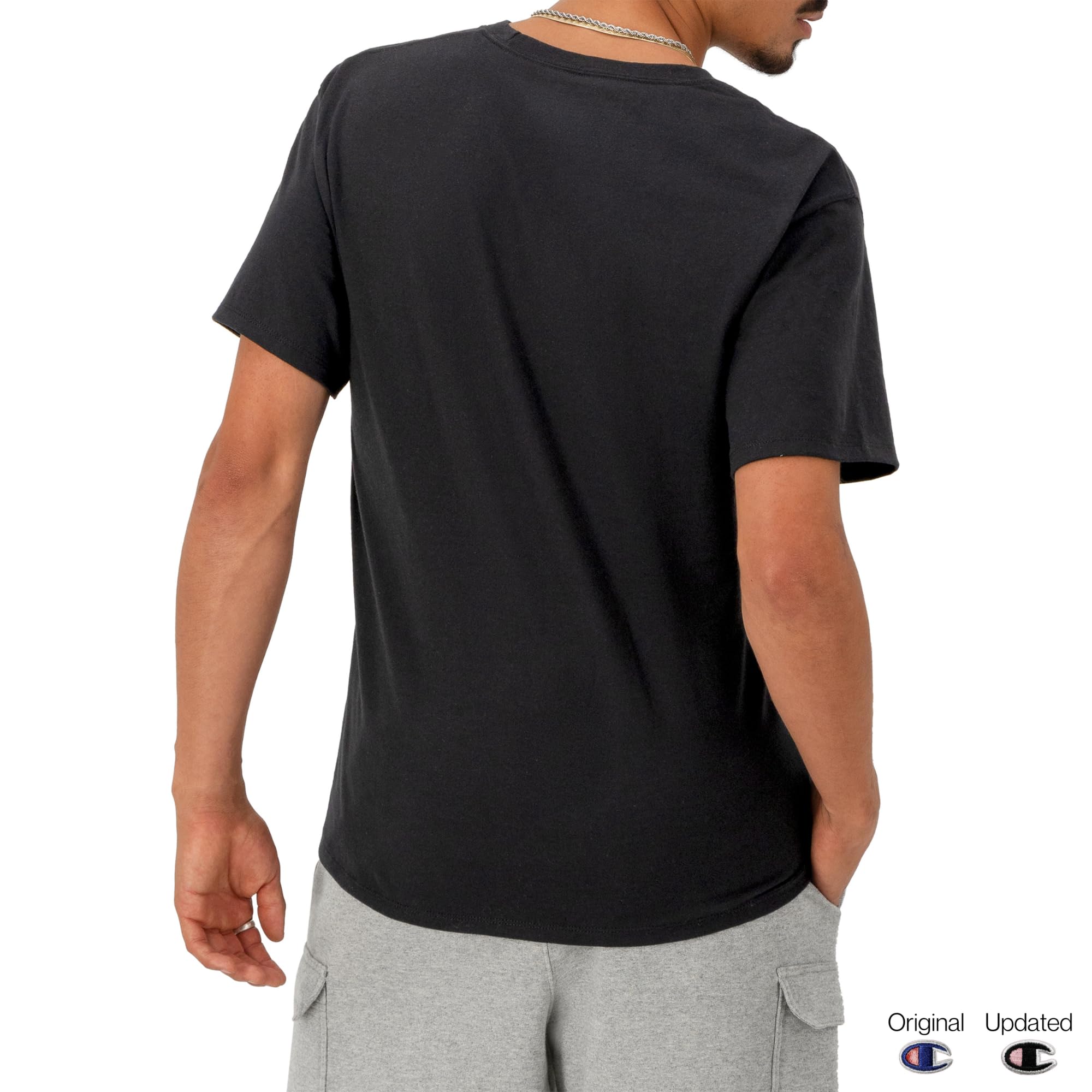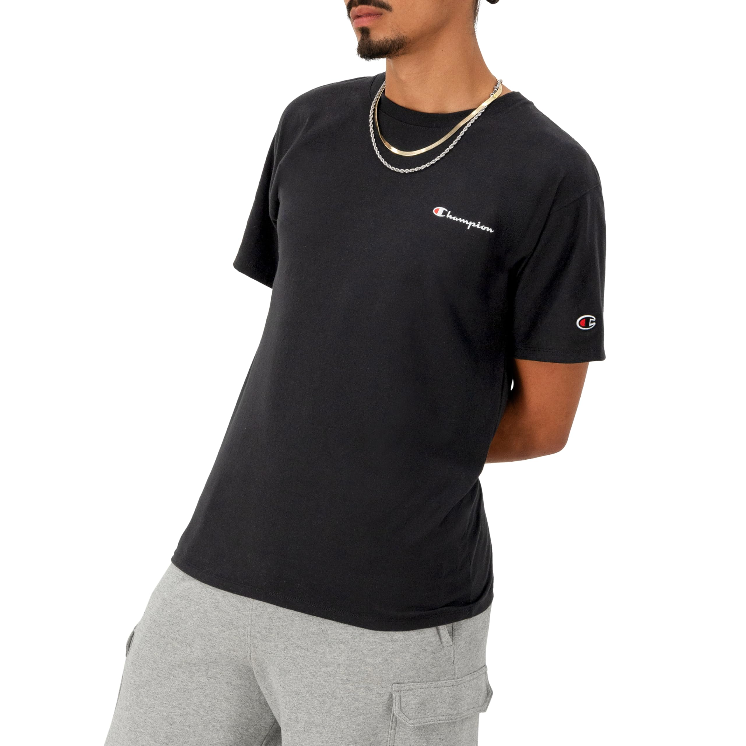 Description ALL-STAR STYLE. Outshine the competition with star graphics that bring the style. With unmatched comfort and softness, our graphic T-shirt for men is your best companion, from sport to street. Crafted with attention to detail and built to be a longtime favorite, it has a ribbed collar and sturdy stitchwork. Iconic C logo hits at the sleeve, showing everyone what you’re all about. Pair this men’s T-shirt with your favorite Champion joggers and shorts for a rounded out sporty look that can’t go wrong.