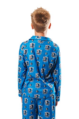 STYLISH DESIGN: This set includes a button-up shirt, elastic waistband bottoms, and an all-over print of your favorite NBA team's primary and secondary logos.