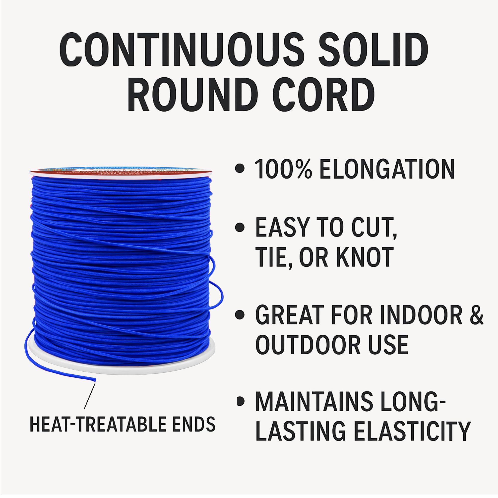 Bulk Stretchy Fabric Elastic Cord 1mm Stretch Strings Spool: The continuous 109-yard solid round cord elastic with heat treatable ends offers 100% elongation. Easy to cut, tie, or knot, the colored elastics cord for indoor & outdoor maintains long-lasting elasticity.