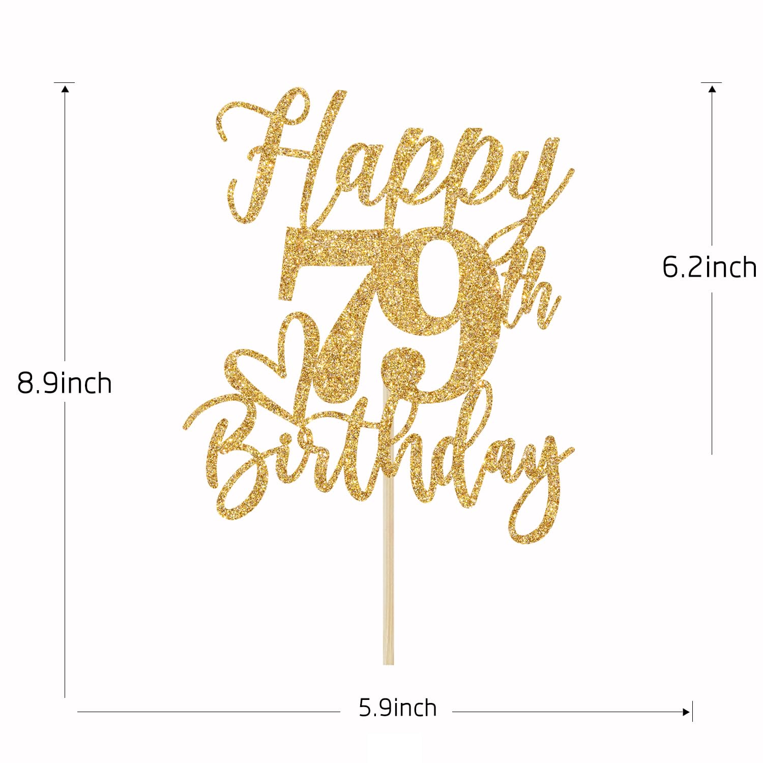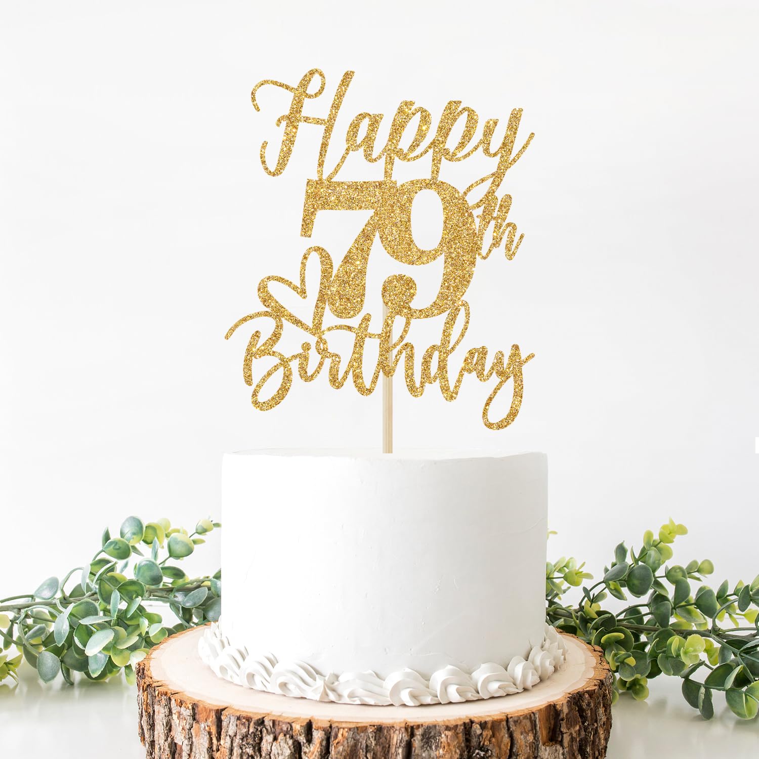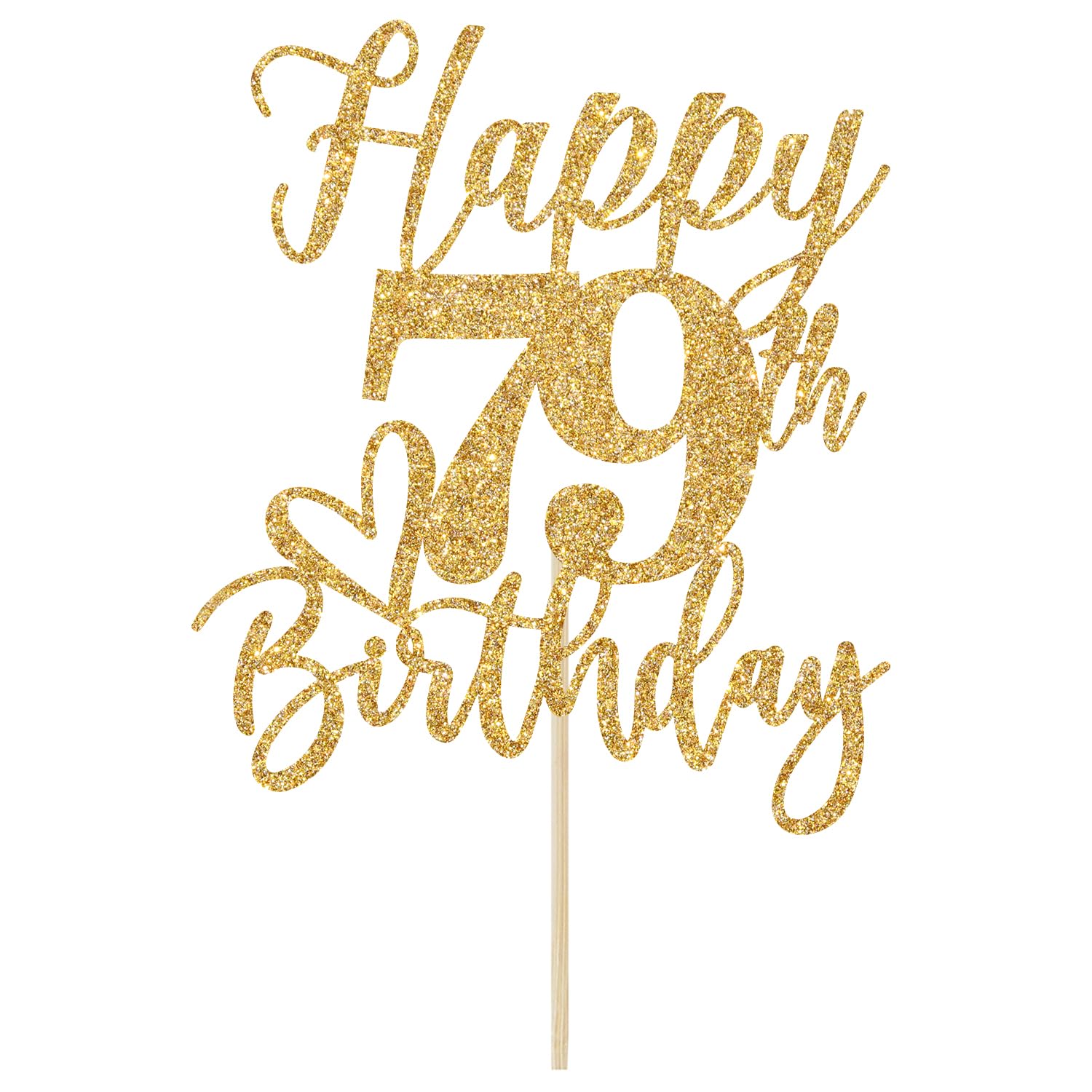 Happy 79th Birthday Cake Topper It made of quality the glitter paper and toothpicks which are safe for use. They are great anniversary themed party cake toppers, to make the cake looks much more different. The cute cake toppers also can be used as cupcake picks, appetizer picks, fruit picks, or party food picks, etc. This classy luxurious cake topper is a great choice to decorate for your party idea. It is perfect for party celebrations! Used as a photography prop, it will be sign to take photo in your party.