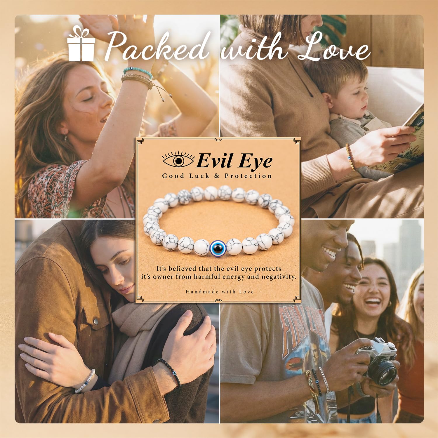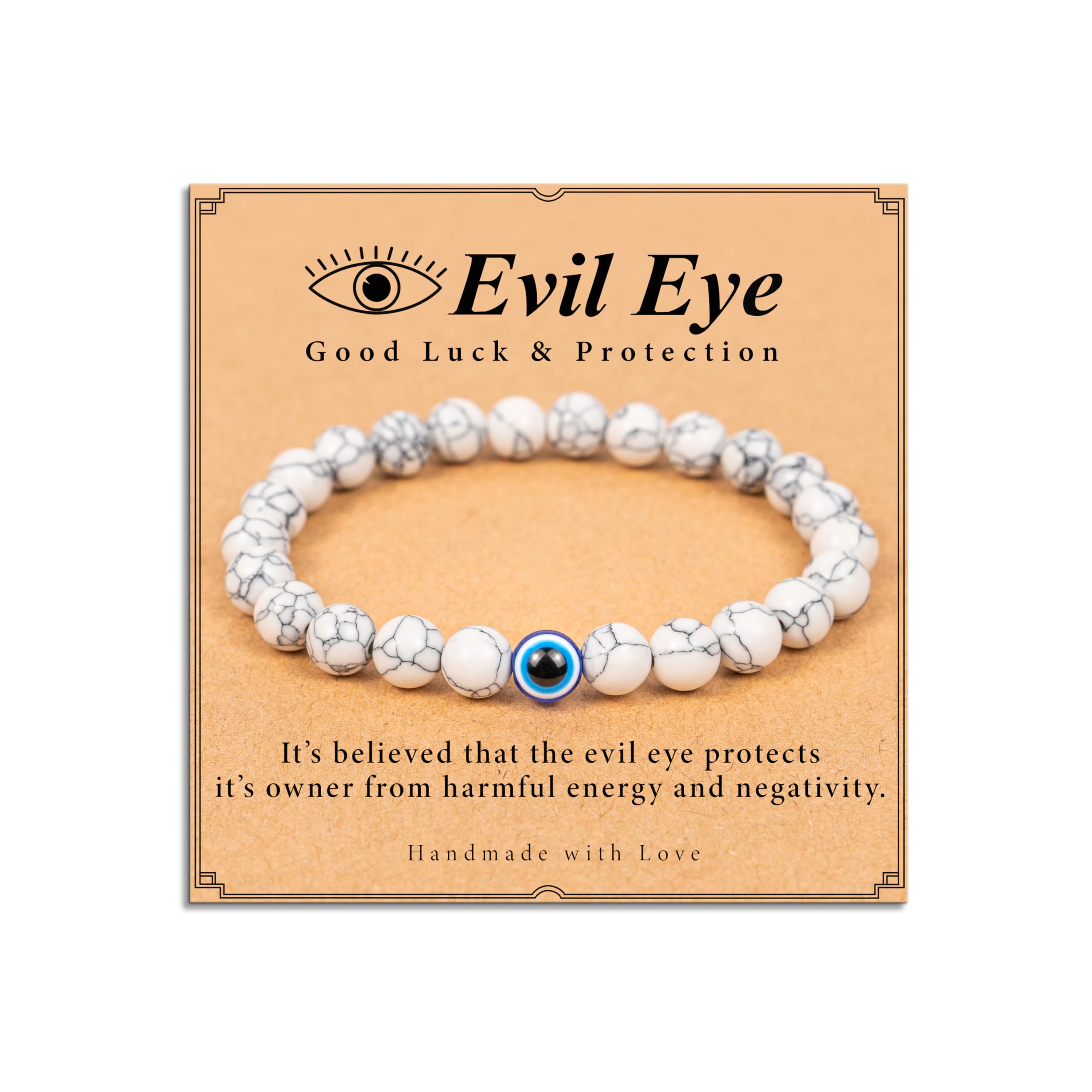 Eye-Catching Details: The intricate evil eye charm is the focal point, complemented by sleek beads or chains for a chic look.