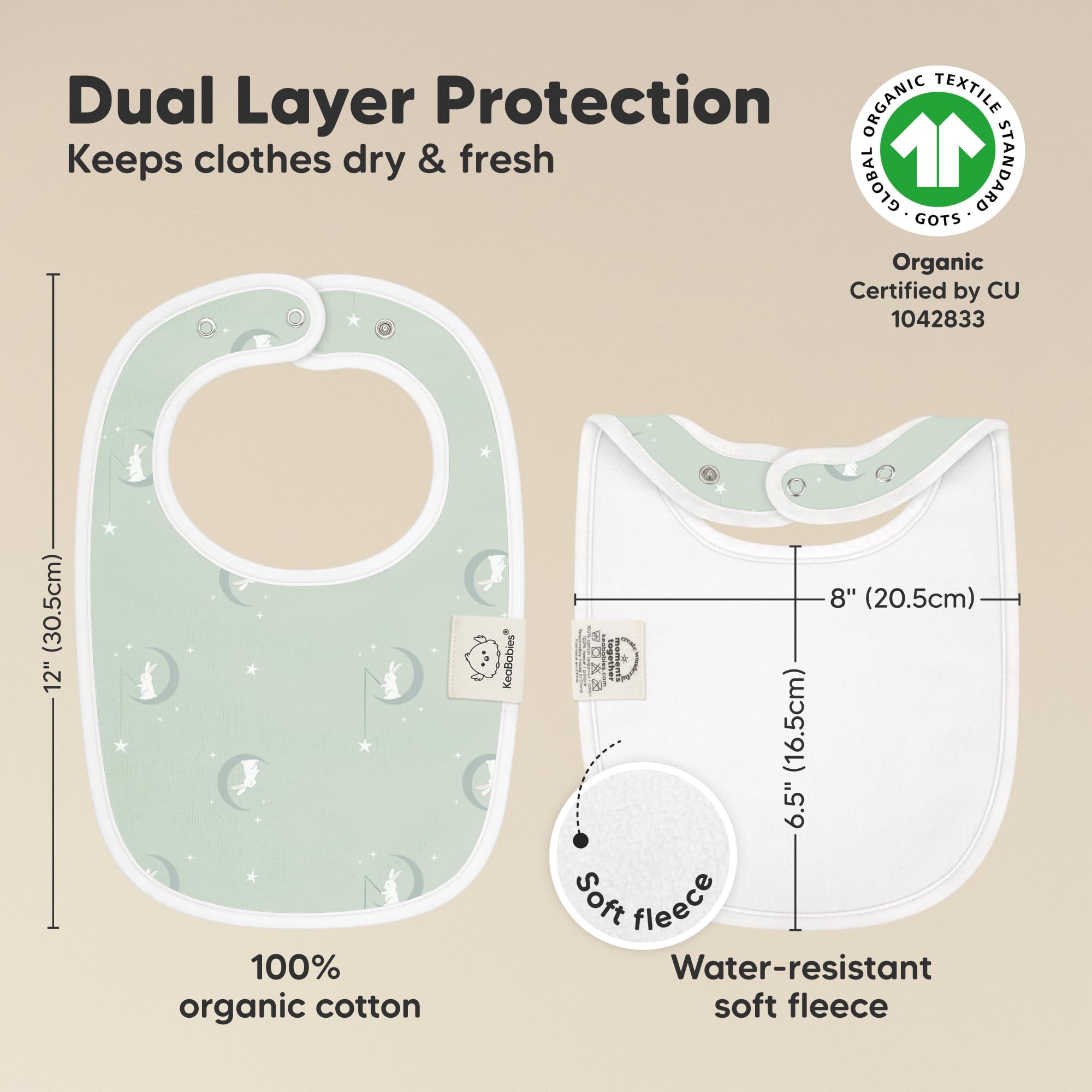 Super Absorbent - Our organic baby boy and girl bibs are made with 100% organic cotton (GOTS-certified) and backed with water resistant fleece for added absorption. This dual layer design helps to keep your baby clean and fresh all day long. Suitable for newborns, infants, toddlers, heavy droolers and teething babies.