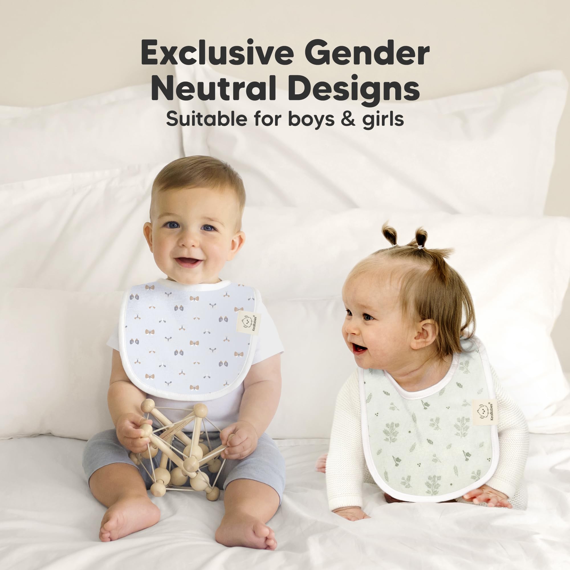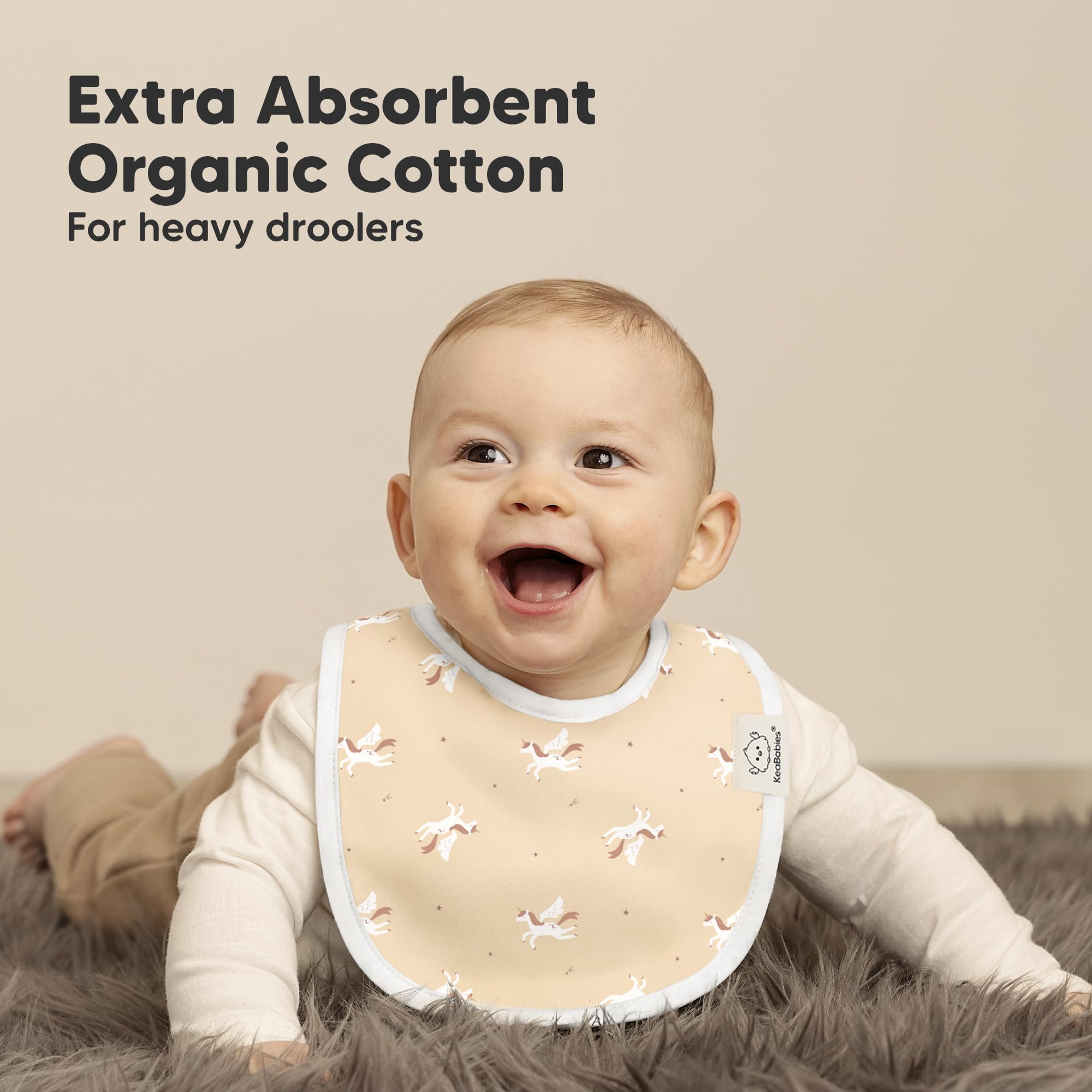 8-Pack Cute and Fun Baby Bibs for Boy and Girl - Our organic baby boy bibs and girl bibs are exclusively designed by KeaBabies to ensure that your baby never runs out of styling options. Our baby bibs are unisex and easy to match, making them a fuss-free teething baby essential.