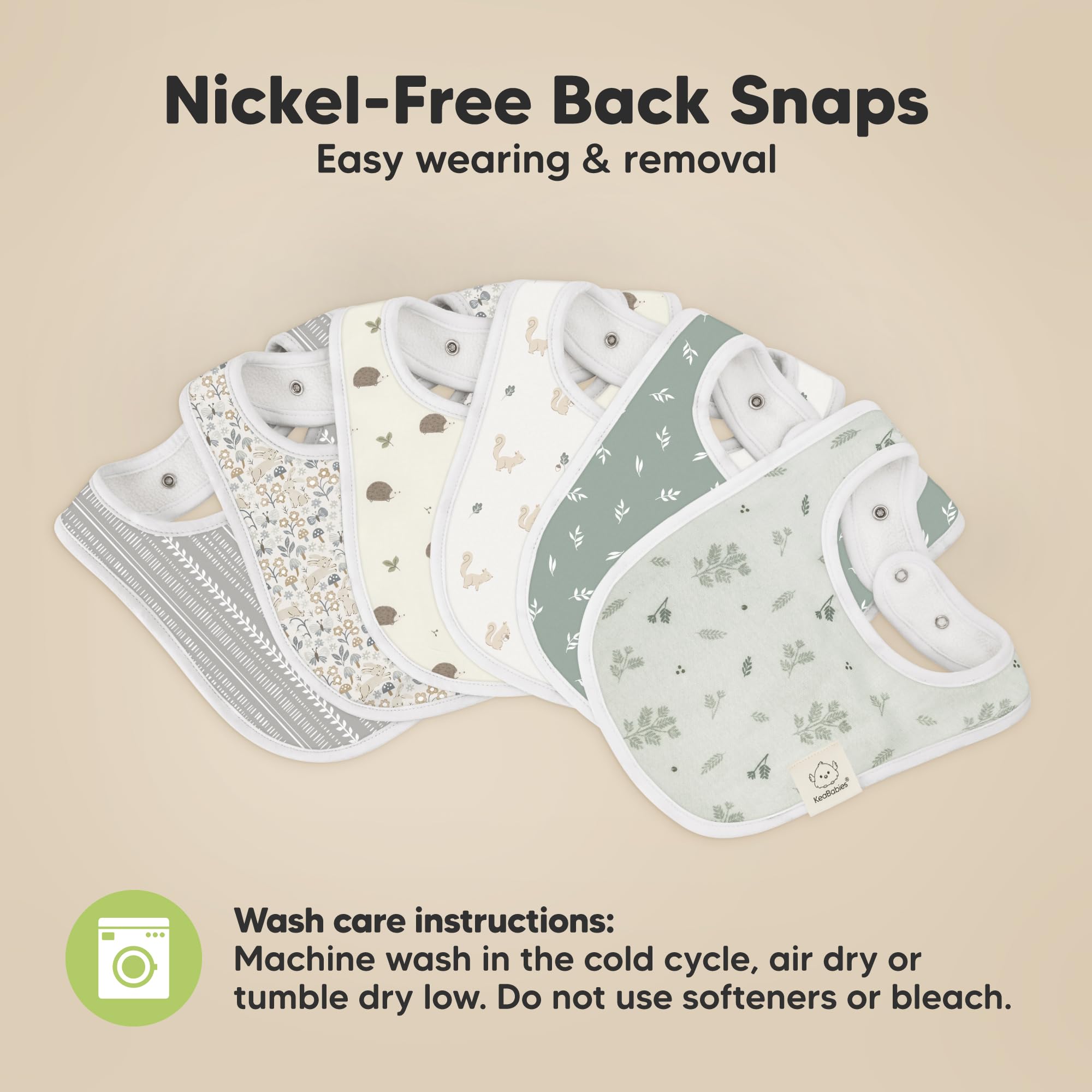 3 Adjustable Size With Soft Seams - With 2 sets of easily fasten nickel free snaps, you can adjust the girl and boy bibs according to your baby’s neckline. The soft wrapped organic cotton seams provide extra comfort for your baby and they won’t feel a thing while having the baby cotton bibs on. Suitable for newborn babies up to 24 months.