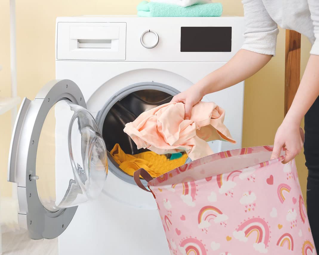 【FEATURE】:1.The laundry basket has a large capacity and can store the whole family's clothes. 2.Laundry basket with two handles, easy to move. 3.collapsible design,you can fold it up when you don't need it,easy to store and save space. 4.The pattern of clothes hamper is fashionable and stylish, It will be great gift for family and a good helper for housewives.