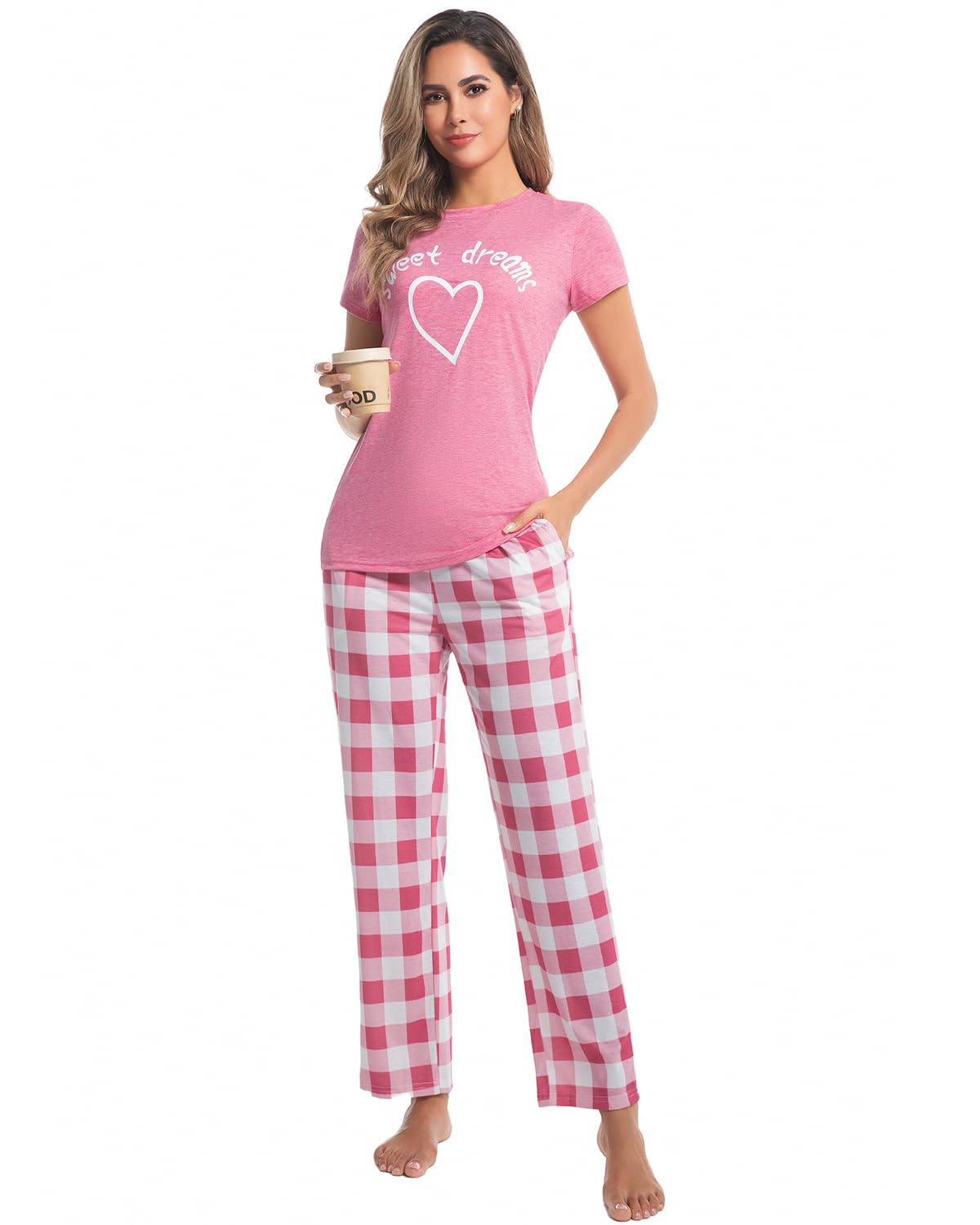 Full-Length Pj Pants: Plaid and polka dot pajamas bottom has 2 pockets to store your belongings; While drawstring waistband fits perfectly on all body shapes