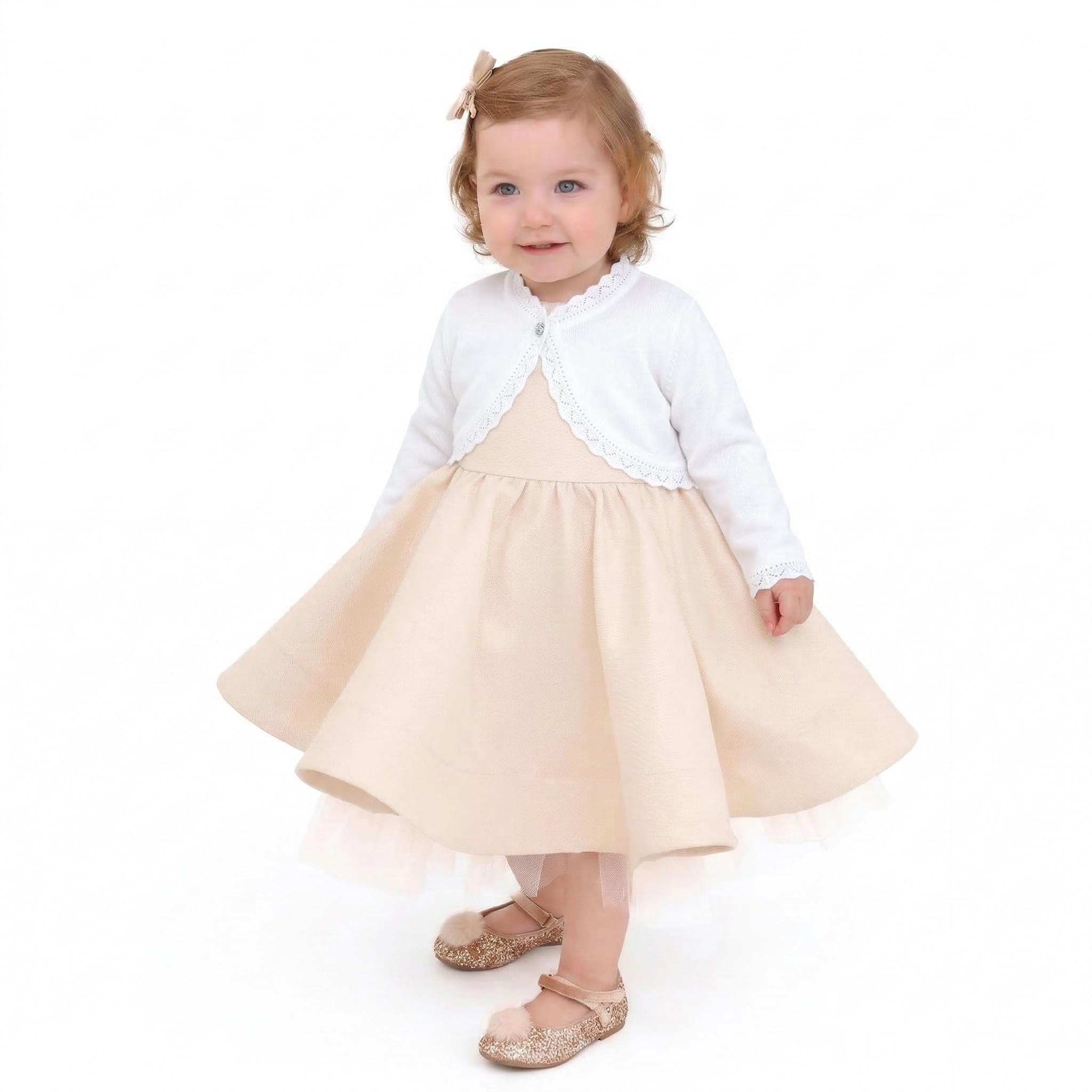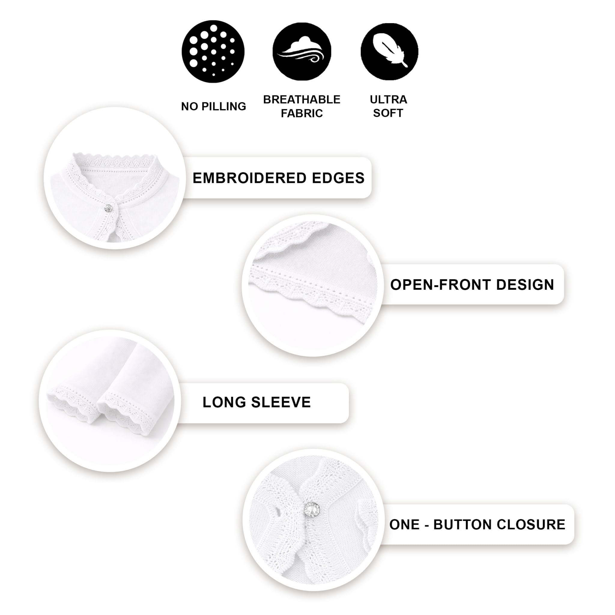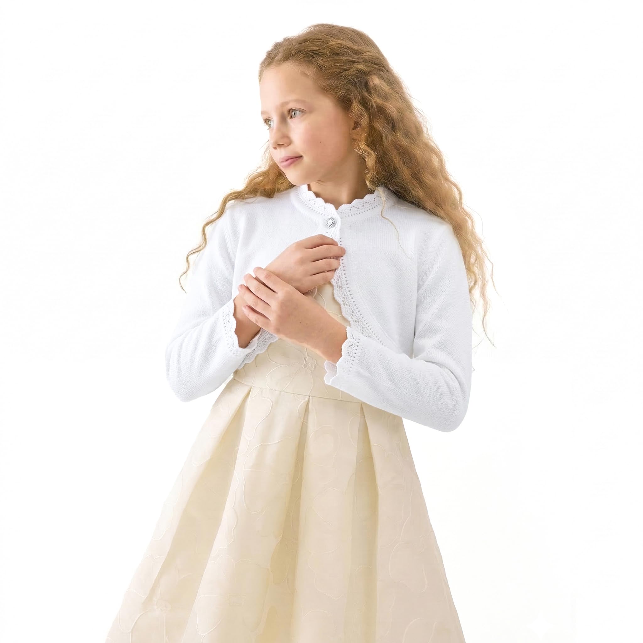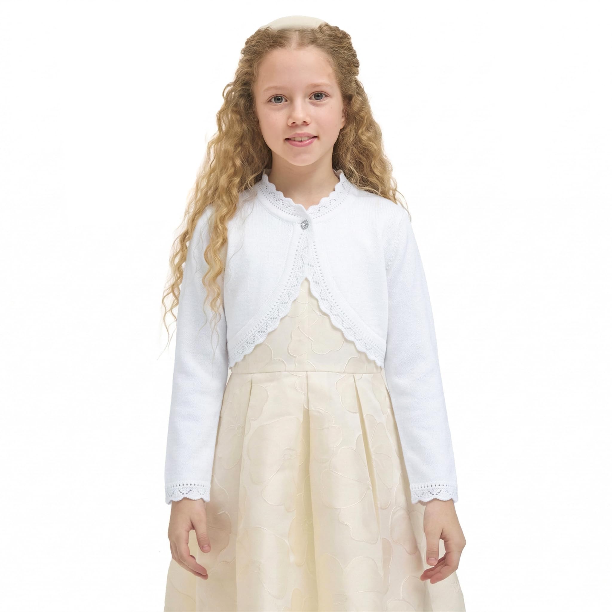 Long sleeve eyelet hem design bolero is perfect for over any dress