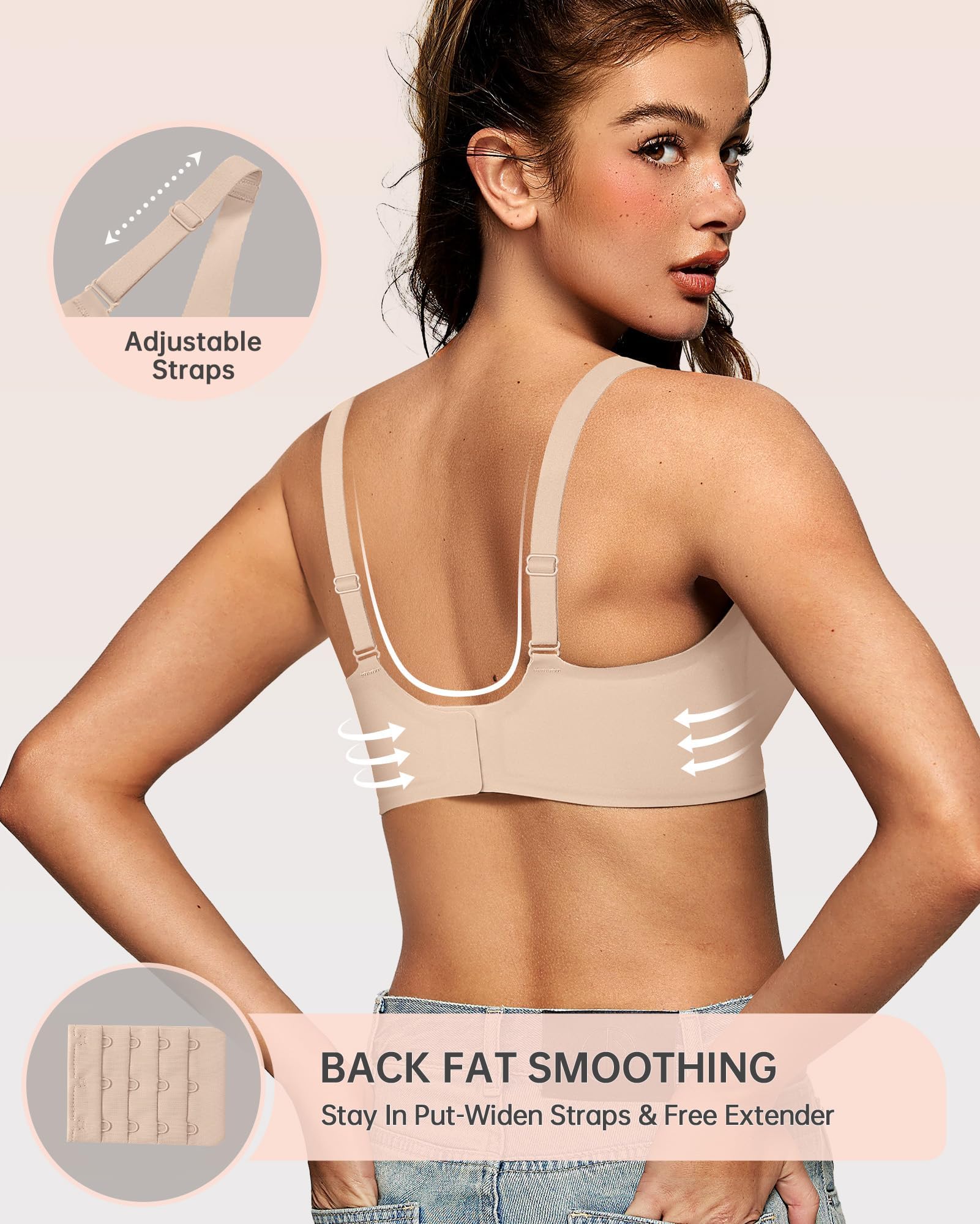 Seamless Bras with Sexy U-Shaped Back - These invisible bras with adjustable, non-slip straps provide better support and reduce pressure on the shoulders and neck. The seamless U-shaped back design stays hidden under any outfit, including backless tops. The integrated back hooks and widened sides make the bras supportive and ensure back fat smoothing.