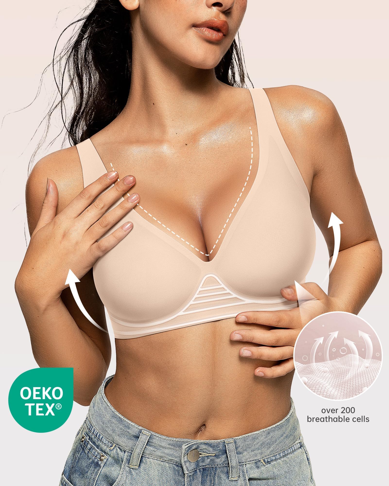 Stylish Deep V Bras for Women - The OEAK Wireless bra adopts a cute plunge design, which gathers and lifts your breasts, setting off the breast line to make your breasts more upright, round, and perfectly shaped. It showcases the seductive collarbones and cleavage under t-shirts and other clothing. The seamless Deep V bras are particularly effective in showcasing a beautiful neckline, making them ideal for wearing under low-cut tops and dresses, thus making your outfit simple and elegant.