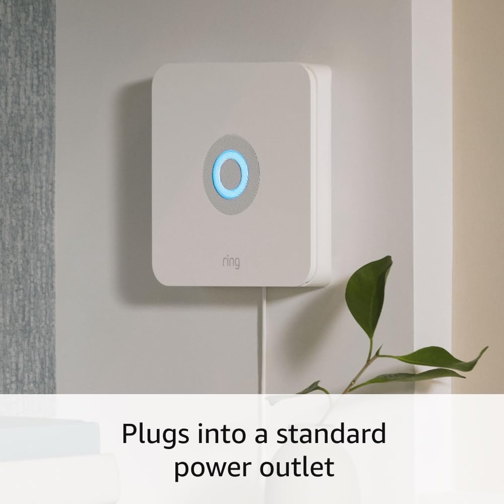 Central core of your Ring Alarm. Alarm Base Station keeps your alarm system and Sensors, sold separately, online and connected to your mobile devices.
