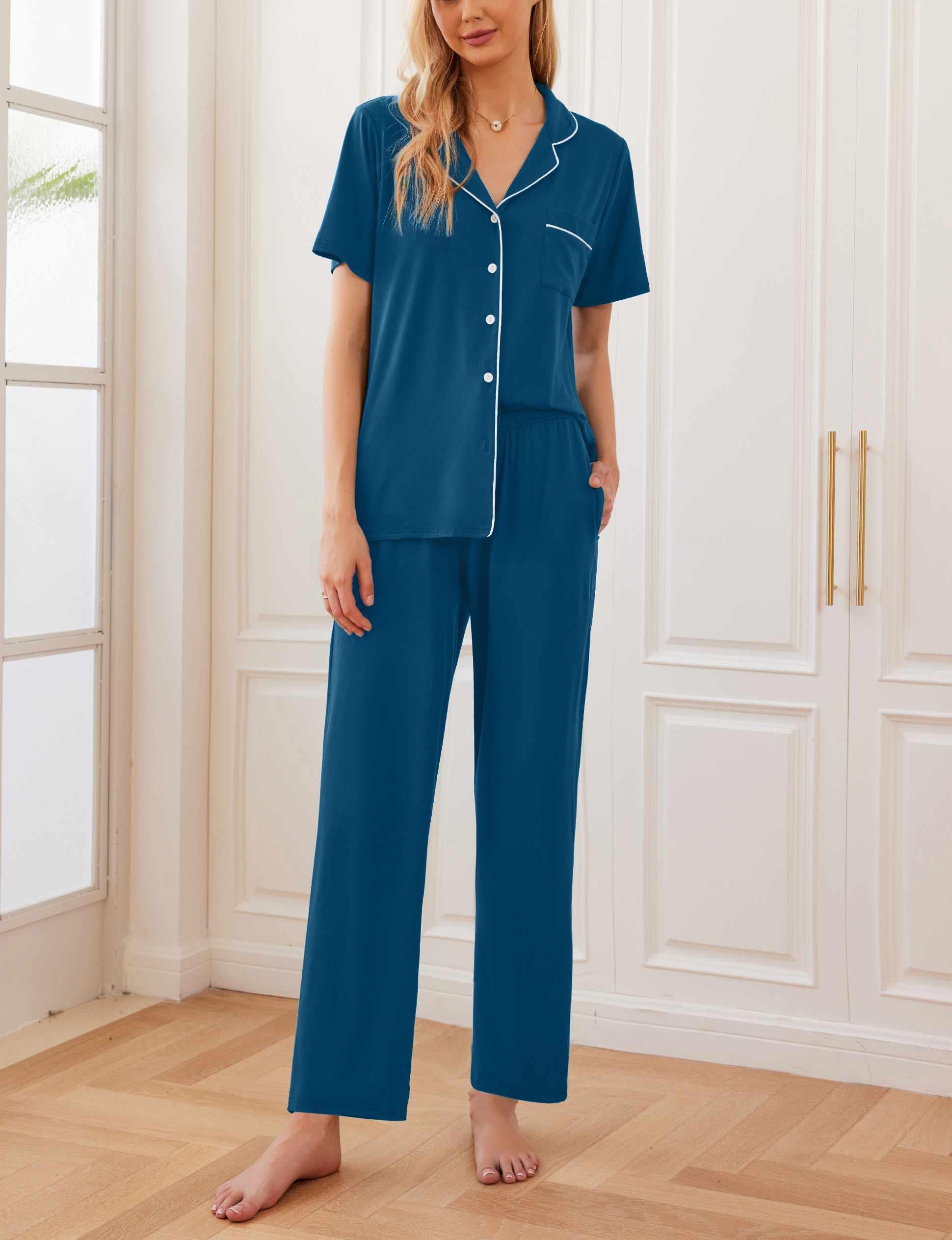 Classic Pajamas Set: Casual short sleeve sleepwear is perfect for a relaxing day or night. You can wear it after the shower and relax completely. And it is also great for lounging, sleeping, labor, party pajamas, girls day, wedding pajamas
