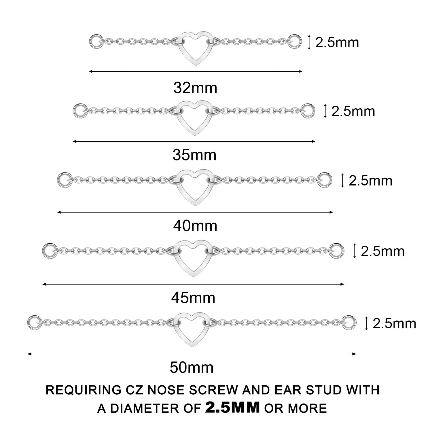 【Specification Information】: Five Kinds different sizes of nose ring chains, 32mm, 35mm, 40mm, 45mm, 50mm, can easily meet your wearing needs.(The set does not include nose studs, nose rings, and ear studs)