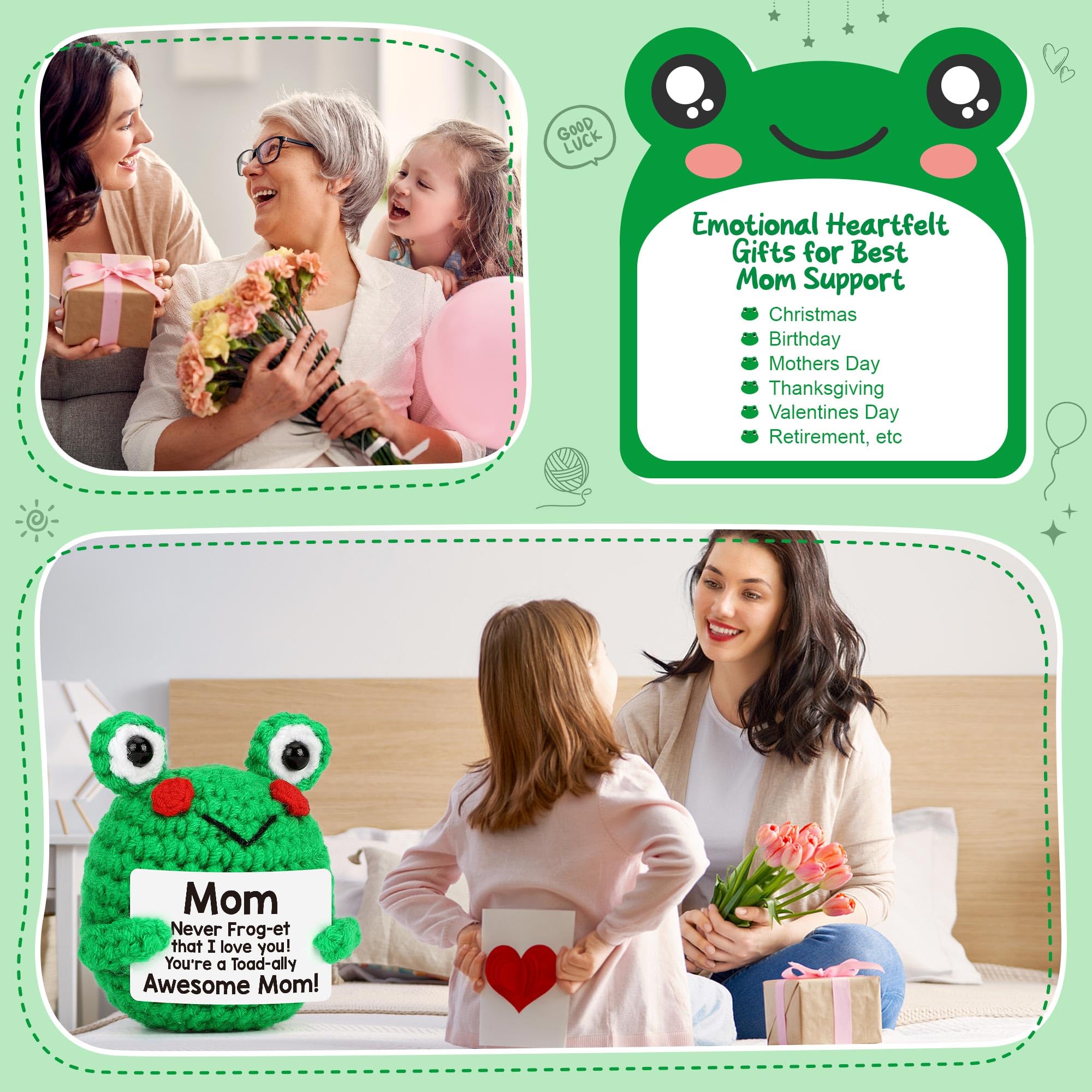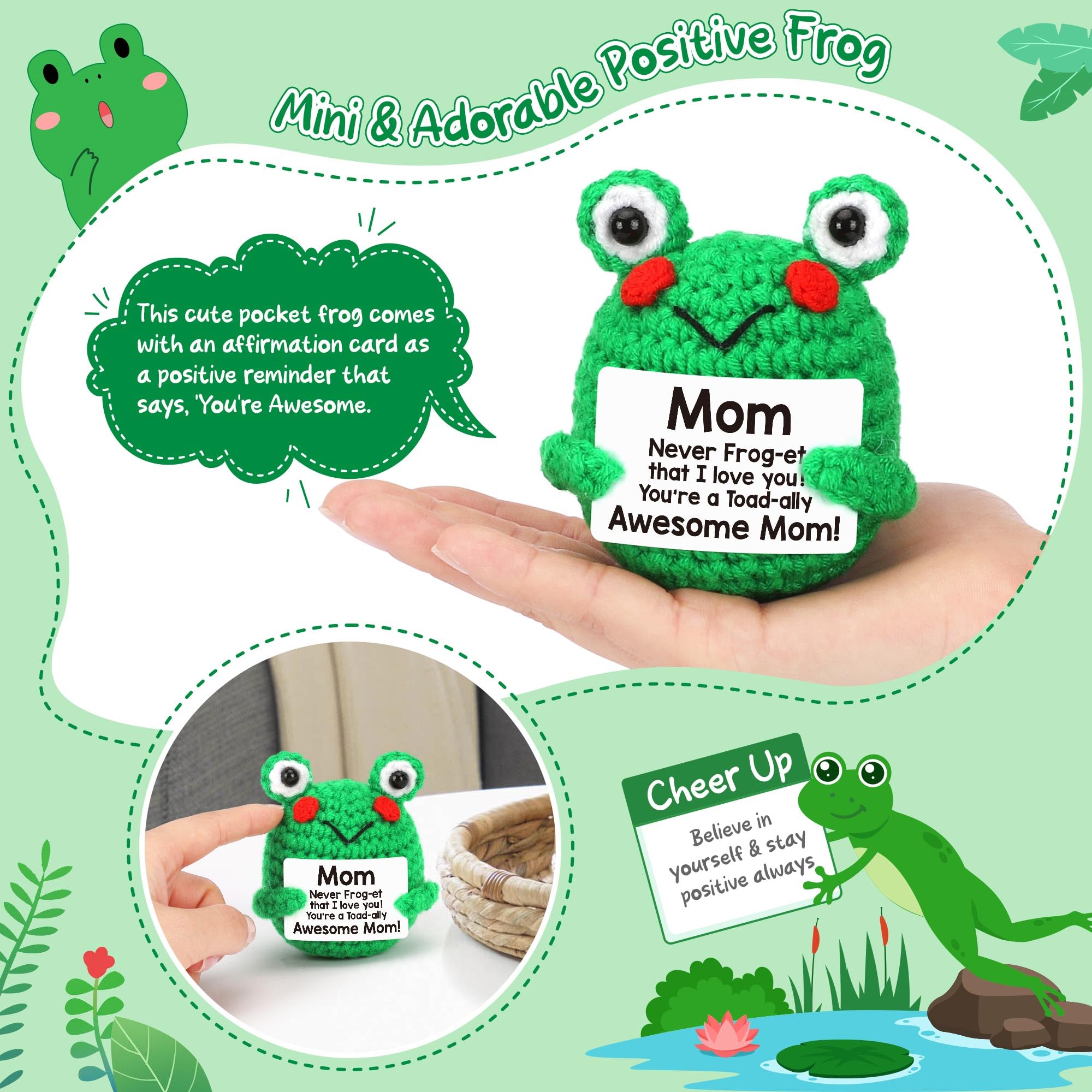 Funny Thoughtful Handmade Gift for Mom: These adorable crocheted frog animals make the perfect birthday gift for moms, bonus moms, and mother-in-laws; Super cuddly and charming, they’re a delightful choice for frog lovers; A funny, unique addition to any mom’s birthday, Christmas, easter basket stuffers
