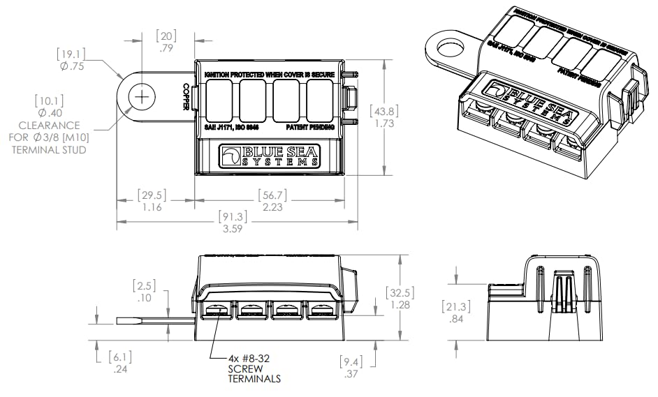 Organize and protect circuits with a covered fuse block. Fuse blocks are an effective method of preventing damage to wiring and reducing fire risk due to overloads or short circuits. This space-saving Blue Sea Systems fuse block provides protection for new installations or when existing panels run out of breaker space. Commonly used for electronics, it can be powered by a single breaker and supply power to four additional circuits. Its compact size fits tight spaces close to the loads. Accepts ATO/ATC fuses rated from 1 to 30 amps.